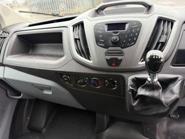 , 16in Steel Wheels, 8-Way Driver Seat with Fore-Aft - Recline -Height and Tilt, Airbags - Driver, Anti-Lock Braking System - ABS with Electronic Brake Force Distribution - EBD, Armrest - Drivers, Assist Handle - Located on B-pillar, Auxiliary Connection Point - 1x12V - 60A Connection Located Under Driver Seat Pedestal, Battery - Cold Start -20 Degree C, Battery - Single Improved Flood - IF, Bodyside Mouldings - Wide - Self Colour, Bottle Holder - Twin 2 litre Bottle Capacity - Facia-Mounted, Bulkhead - Full Steel, Bumper - Front Body Colour - Partial, Courtesy Lights - Header-Mounted Front with Theatre Dimming, Curve Control, Daytime Running Lamps, Door Handles - Self Coloured, Door Mirrors - Blind Spot Eliminator and Integrated Side Indicator, Door Mirrors - Manual Adjust, Doors - Passengers Sliding Side Load Door and Step, Doors - Unglazed Rear Doors - Hinged for 180 Degree Opening - Positive Stop At 90 Degree, Driver Seat Belt Minder, Dual-Circuit Front and Rear Discs with Self-Adjusting Servo-Assistance and ABS, EBA - Emergency Brake Assist, EDCC - Electronic Dynamic Cornering Control, ESC - Electronic Stability Control, Emergency Brake Warning, Floor Covering - Cab Easy-Clean Rubber, Ford Connected Audio System, Ford Easy-Fuel Capless Refuelling System, Ford Eco Mode - Driver Information System, Front Grille - Sterling Grey, Gearshift Indicator Light, Glovebox with A4 File Storage, Headlights - Courtesy Delay, Headlining - Cab - Moulded, Heater - Positive Thermal Coefficient - PTC, Hill Start Assist, Immobiliser - Safeguard Passive Anti-Theft System - PATS - Insurance-Approved Category 2 Immobiliser, Interior Lighting - Battery Saver - 30min, LAC - Load Adaptive Control, Less Easy Clean Floor, Less Steel Spare Wheel, Liftgate - Cargo Door Handle - Self Colour, Load Compartment - DIN 75410 Compliant Tie-down Loops, Loadspace Compartment Light, Locks - Audio Mislock Feedback - Audible Signal if a Door is Ajar When Locking Activated, Locks - Auto Locking on Drive-Away - Doors Automatically Lock at 8 kmh or 5 mph, Locks - Auto Relocking - Doors Relock after 45 Seconds if no Door is Opened, Locks - Configurable Unlocking, Locks - Key Operated Bonnet Release, Locks - Power Door Deadlocks - Shielded with Strengthened Mountings, Locks - Remote Control Central Locking with One Key Fob, Mud Flaps - Rear, Overhead Storage Shelf, Power Point Socket - 2x 12V, Power-assisted Steering - PAS, RSC - Roll Stability Control, Rear Bumper - Self Colour with Integrated Step, Recirculation Heater - Front, Seat Belts - 3-Point Diagonal Inertia Reel - All Seats, Seat Tray-Table, Seats - Dual Passenger, Side Wind Mitigation, Standard Duty Alternator - 150amp, Steering Column - Rake and Reach Adjustment, Steering Wheel - 4 Spoke Polyurethane, Storage - Drivers Side - Storage Compartment on Facia Top with Lift Up Lid, Storage - Front Door Map Pockets, Storage - Underseat Stowage Compartment Under Dual Passenger Seat, Suspension - Front Independent MacPherson Struts -Variable Rate Coil Springs - Stabiliser Bar - Gas-Pressurised Shock Absorbers and Rear Leaf Springs, Traction Control - TC, Trip Computer, Tyre Inflator Kit, Vehicle Identification Number - VIN - Visible, Water in Fuel Filter with Sensor, Wheel Covers - Half Caps, Windows - Electrically-Operated Front with One-Touch on Drivers Side, Wipers - Front Variable-Intermittent with Electric Wash