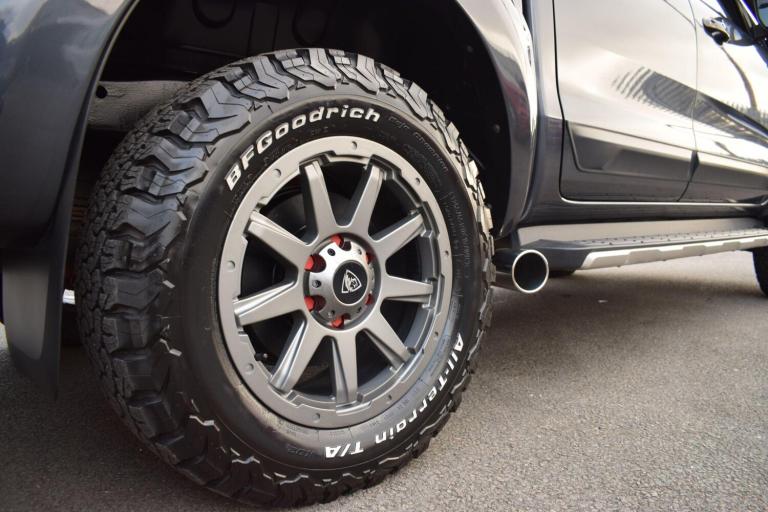 [NO VAT] 2017 ’17 Ford Ranger 3.2 TDCi Wildtrak Auto 4WD finished in Sea Grey Metallic. 45800 miles covered by three owners with stamped Ford main dealer and independent service history to support up to and including 2026. Further maintenance includes automatic transmission service, front differential service and fuel filter replacement all completed in 2025. Supplied with all correct documentation, handbooks etc and subjected to our usual strict pre delivery inspection and preparation process ensuring all cosmetic and mechanical elements are in good order including BF Goodrich tyres. This Ranger benefits from a host of upgrades and additional features both cosmetic and functional, resulting in a great looking and very capable truck. These include: Truckman rear canopy with roof rack, X-Treme extended wheel arches (colour coded), Pedders 1.75 inch suspension lift kit, 18 inch grey Predator Hurricane alloys, snorkel, 76mm front bull/nudge bar, bonnet deflector, front and rear light surrounds, mirror indicator extenders, heavy duty tow bar, side exit exhaust and silencer delete, front LED grill lights and Predator 38mm wheel spacers. Please note the winch pictured is not functional and is fitted for display purposes only. Factory equipment highlights include: 8in Touchscreen Colour Display, Satellite Navigation - Navigation Center, Ford SYNC2, Rear View Camera, Parking Sensors - Front and Rear, Cruise Control with Adjustable Speed Limiter, Seats - Front 8-Way Power Adjustment, Seats - Front Heated, Heated Windscreen, Dual Zone Electronic Automatic Temperature Control, Mobile WiFi Hotspot Capable, Roof Rails - Aluminium Finish, Side Steps - Stainless Steel, Sports Bar - Aerodynamic, Trailer Sway Control, Hill Descent Control, Electronic High and Low Range Selection, Tyre Pressure Monitoring System, Thatcham Category 1 Alarm and more.