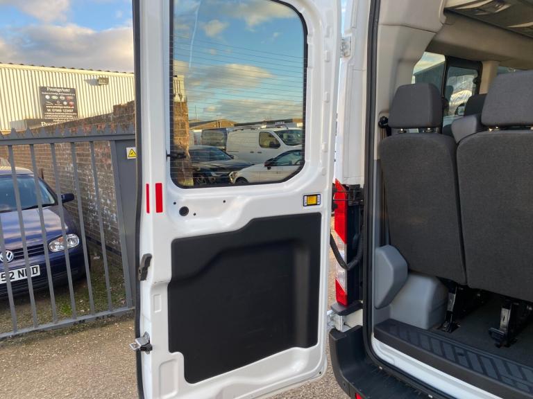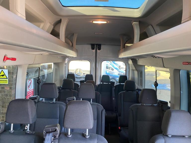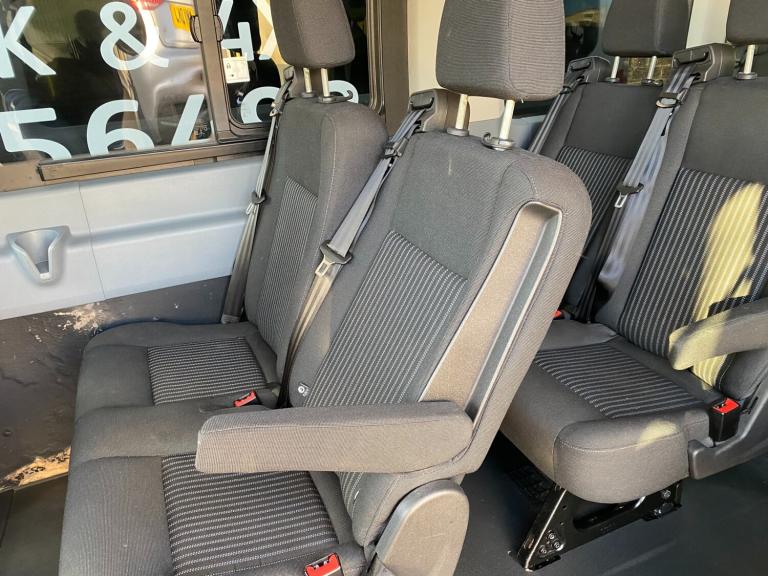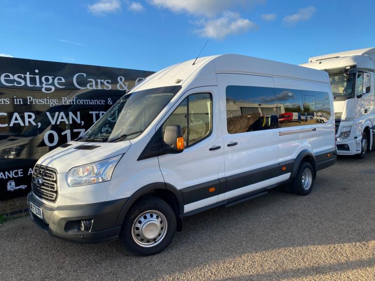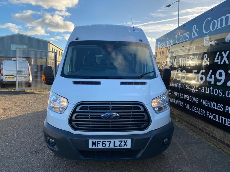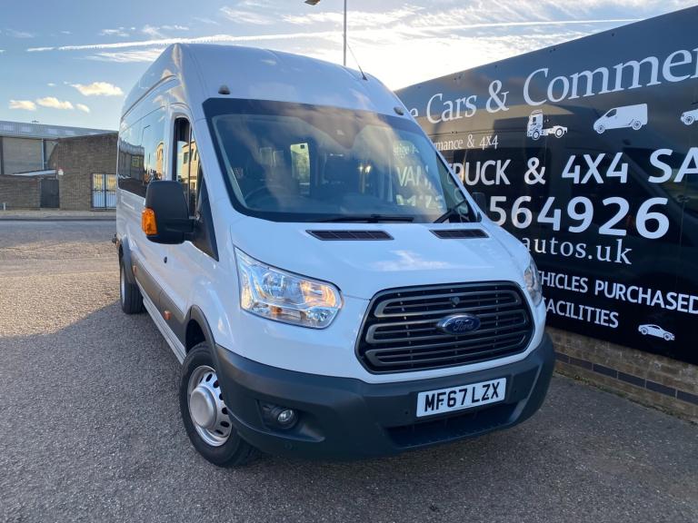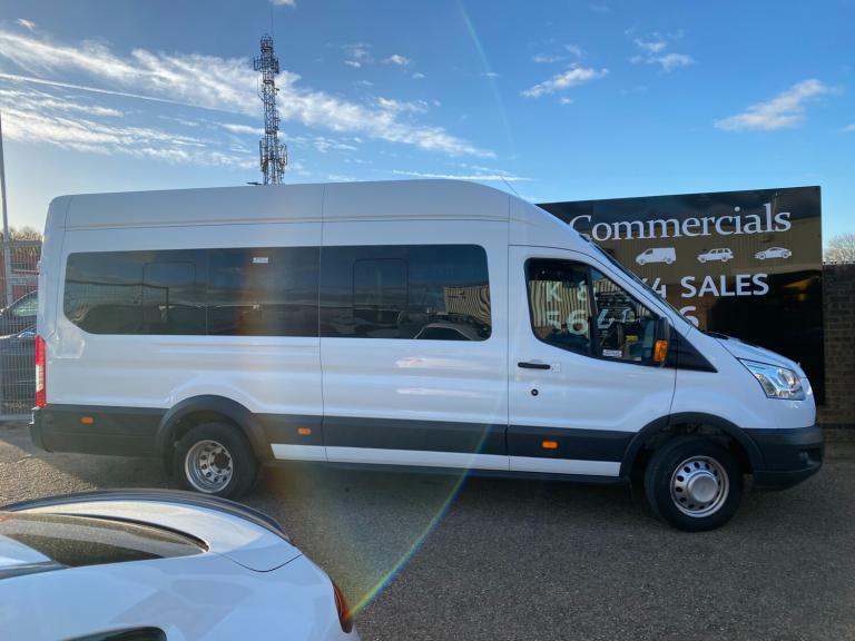 2017 67 PLATE FORD TRANSIT 460 ECONETIC TREND L4H3 XLWB JUMBO 17 SEATER MINIBUS EURO 6 ULEZ+LEZ CLEAN AIR ZONE COMPLIANT. 1 GRAMMAR SCHOOL OWNER FROM NEW COVERED GENUINE LOW 38390 MILES / 61784 KILOMETRES. ROBUST RELIABLE 2.2 TDCI 125 BHP TURBO DIESEL CHAIN DRIVEN ENGINE WITH 6 SPEED MANUAL GEARBOX. SOLID FROZEN WHITE PAINTWORK WITH CHARCOAL BLACK SEATS. TOP SPEC TREND MODEL. 17 SEATER INCLUDING DRIVER. CURRENT MOT VALID TILL 26/11/26 WITH NO ADVISORIES, 6 MONTHS NATIONWIDE PARTS AND LABOUR WARRANTY. CHEAP BUS TAX BAND 12 MONTHS PRICED 165 POUNDS. FULLY SERVICED UP TO DATE BY FORD MAIN DEALER WITH CLEAN HEALTH CHECK. READY FOR WORK. LOVELY LOOKING BUS. TWIN REAR WHEELS. LED DAYTIME RUNNING LIGHTS. AIR CON FRONT AND REAR. ELEC WINDOWS. ELEC FOLDING AND ADJUSTABLE MIRRORS. REMOTE CENTRAL LOCKING. REAR VIEW CAMERA. PARKING SENSORS FRONT AND REAR. DRIVER ALERT SYSTEM. LANE DEPARTURE WARNING SYSTEM. CRUISE CONTROL. FACTORY FITTED PRIVACY TINTED GLASS. REAR OVERHEAD STOWAGE SHELVING WITH INDIVIDUAL READING LIGHTS AND TWIN AIR DUCTS TO EACH SEAT. 3 POINT SEAT BELTS. REAR SEATS FOLDING ARMRESTS WITH INDIVIDUALLY RECLINING SEATS. REAR SUNROOF. CD RADIO MP3 PLAYER WITH AUX IN USB MUSIC MEDIA CONNECT. BLUETOOTH TELEPHONE AND AUDIO INTEGRATION. VOICE CONTROL COMMAND SYSTEM. FRONT FOGS. LANE DEPARTURE WARNING SYSTEM. DIGITAL TACHOGRAPH. AUTO DIMMING MIRRORS. 62 MPH/100 KMH ELEC SPEED LIMITER. ELEC RETRACTING SIDE STEP AUTOMATIC. RUBBER FLOORING FRONT AND REAR. HILL START ASSIST. WRAPAROUND TWIN REAR DOORS. VISIBILITY PACK HIGH. FIRE EXTINGUISHER. LOCKING GLOVEBOX. ASSIST HANDLES. COAT HOOKS. AUTO LIGHTS AND WIPERS. ISOFIX SAFETY CHILD SEAT POINT. HEATED FRONT SCREEN AND HEATED REAR WINDOWS. MULTI FUNCTION LEATHER STEERING WHEEL. DRIVES AIRBAG. PASSENGER SWITCHABLE AIRBAG. 4600 KG GROSS VEHICLE WEIGHT. 3281KG UNLADEN WEIGHT. 1319KG PAYLOAD CAPACITY. 1950KG TRAILER PULL CAPACITY. SUPERB LOOKING BUS. DRIVES BEAUTIFULLY. VIRTUALLY MINT CONDITION INSIDE OUT. CHOICE OF MINIBUSES ALWAYS IN STOCK. MANY MORE PICTURES ON OUR WEBSITE. CHOICE OF QUALITY USED HAND PICKED COMMERCIALS IN STOCK NOW.
