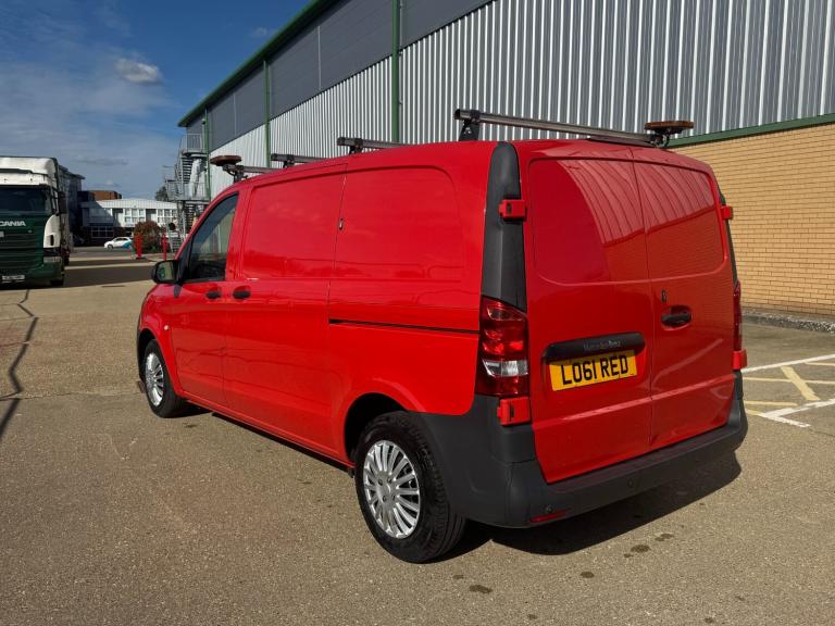 2017 17 Reg Mercedes-Benz Vito 109CDI 103'000 MilesSmart looking Mercedes Vito finished in red, covered 103'000 miles and ready to go to work. A very practical van with a great rear setup, including shelving/racking, inverter system and 12V plug sockets in the back, making it ideal for trades or mobile work.Comes with 3 front seats, side loading door, rear barn doors, roof bars, beacon lights, multifunction steering wheel and radio/media system.A clean, tidy and well equipped van that is been fitted out for work use and offers excellent practicality.