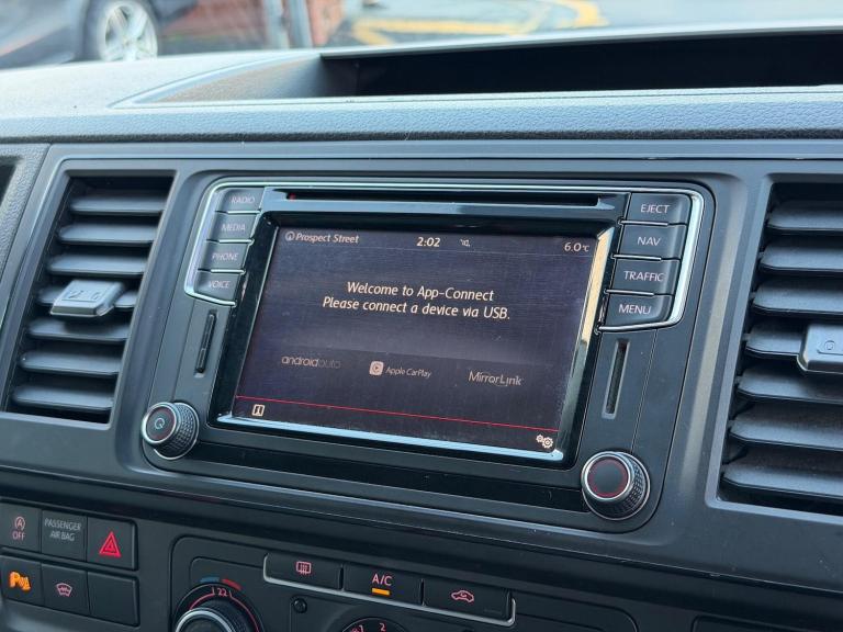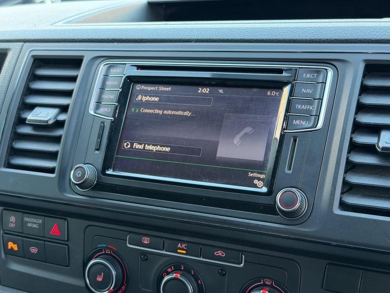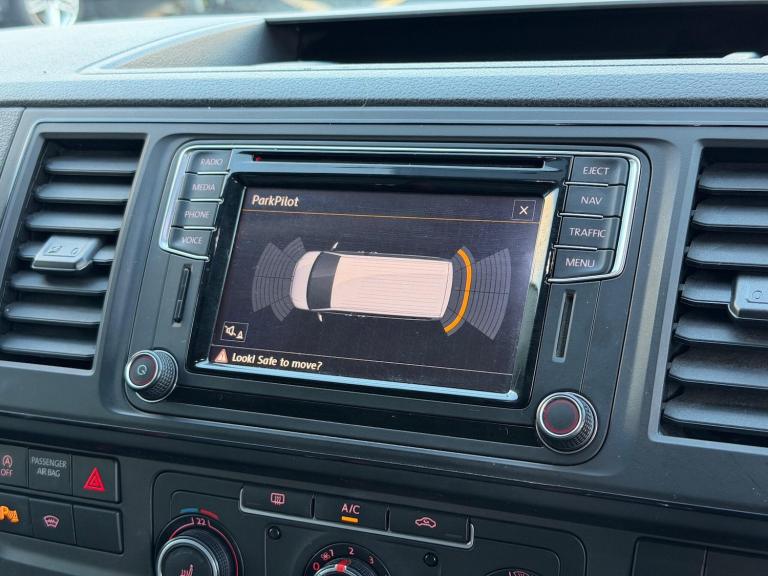 This 2017 Volkswagen Transporter Sportline is a rare find, having had only one owner since new. This Crew Van, a 2.0 BiTDI T32 BlueMotion Tech Sportline model, benefits from a powerful 201 bhp 2.0L diesel engine and meets Euro 6 emission standards. It comes equipped with the desirable Lights and Vision Package Plus, featuring automatic headlights, and rear parking sensors with assistance. Inside, you'll find a Climatic semi-automatic cab air conditioning system, a Discover Media navigation system, and Bluetooth connectivity with Wi-Fi.The Sportline trim level ensures this Transporter offers a superior driving experience. Its impressive cargo volume of 5800 litres provides ample space for your needs. The engine's 201 bhp output indicates a higher level of performance compared to many similar vehicles, while the smooth DSG automatic gearbox enhances driving comfort. This well maintained, single owner vehicle represents a compelling choice for those seeking capability and refinement.