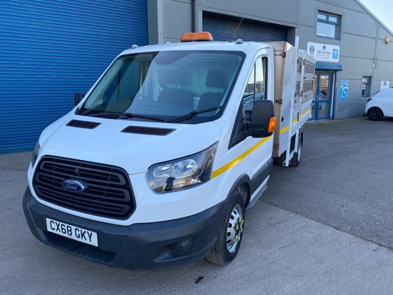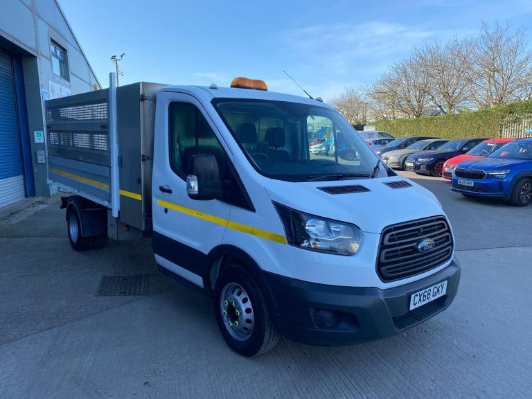 2018/68 FORD TRANSIT T350 2.0 ECOBLUE TDCI STEEL BODIED CAGED TIPPER WITH ALLOY SIDES. 130 BHP ENGINE, 6 SPEED GEARBOX. THE VEHICLE HAS BEEN OWNED BY AND CONTRACT MAINTAINED BY US FROM BRAND NEW AND HAS BEEN OPERATED BY CHESHIRE WEST AND CHESTER COUNCIL. COMPLETE WITH FULL AND VERY COMPRHENSIVE SERVICE HISTORY. FITTED WITH STROBES AND BEACONS, CHAPTER 8 LIVERY FOR FULL COMPLIANCE. EXCEPTIONAL USED CONDITION, VERY CLEAN AND TIDY, READY FOR IMMEDIATE WORK. THE PRICE INCLUDES A 72 POINT PRE DELIVERY INSPECTION, SERVICE, MOT AND 3 MONTHS WARRANTY. THE WET BELT HAS BEEN REPLACED. PLEASE CONTACT STEVE FOR FURTHER DETAILS OR TO VIEW