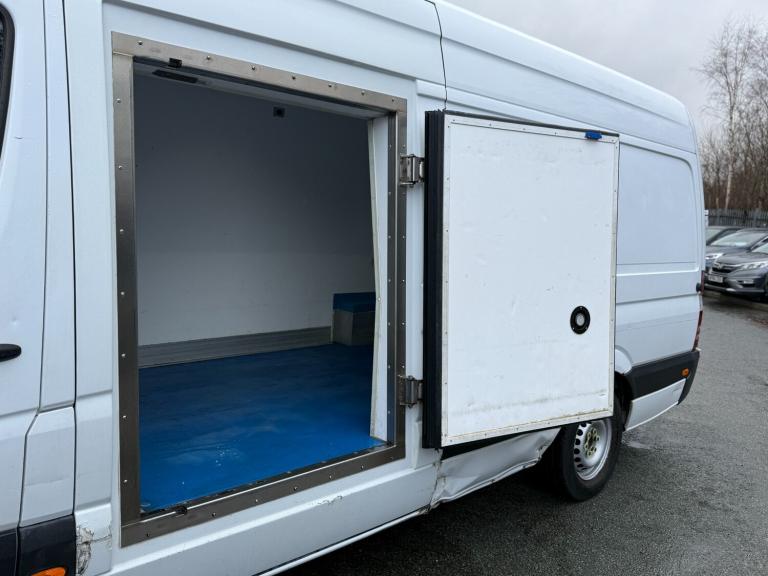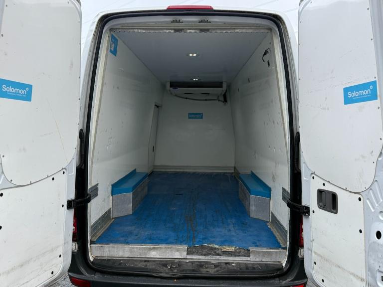 This is a 2018 68 reg Mercedes-Benz Sprinter 314 CDI Bluetec LWB High Roof fridge van finished in white with 162,000 miles. Powered by the reliable 2.1 CDI diesel engine, this Euro 6 compliant long wheelbase high roof model offers strong performance, durability and excellent load capacity, making it ideal for temperature controlled transport and business use. This example is a professionally converted refrigerated van, providing a fully insulated rear load compartment suitable for food delivery, catering, pharmaceuticals or chilled goods transport. The LWB high roof configuration offers generous internal space, allowing for practical loading and easy access. Inside the cabin, it comes equipped with a multifunction steering wheel, Bluetooth connectivity, Audio 10 radio with USB and SD card input, cruise control with Speedtronic variable speed limiter, electric windows and a multi adjustable driver seat for added comfort on long journeys. The van also benefits from a lockable glove compartment, non slip rubber floor covering and multiple storage areas. Safety features include ABS with Brake Assist, Adaptive ESP, ASR traction control, Crosswind Assist, tyre pressure monitoring system, drivers airbag and remote central locking. A clean and ready to work LWB high roof refrigerated Sprinter offering practicality, reliability and strong business potential. Price: £10,995