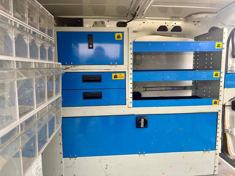Then in the rear of the van it has some very nice and handy racking c/w drawers and storage boxes, hot water hand wash, anti slip flooring and tie downs. Also has the added bonus of a heavy duty 240v power inverter.