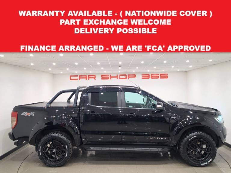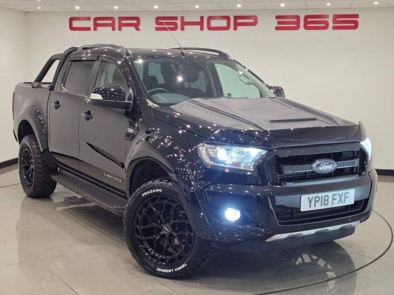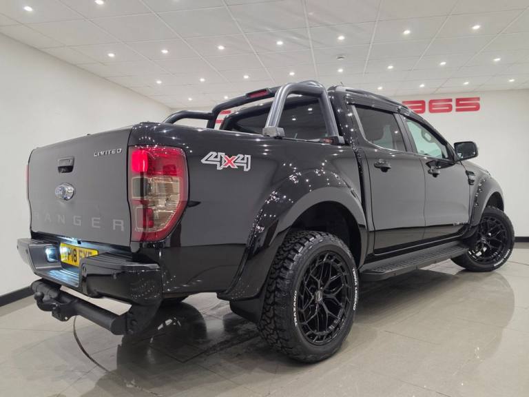 WOW !!....JUST BEEN UPGRADED WITH A WIDE ARCH BODY KIT / BONNET SCOOP / BONNET BROW AND BRAND NEW 20 INCH ALLOY WHEELS IN GLOSS BLACK FINISH WITH BRAND NEW CHUNKY TREAD ALL TERRAIN TYRES !! + ROLL BARS IN REAR WITH 3RD BRAKE LIGHT + METALLIC BLACK PAINTWORK + HEATED FULL BLACK LEATHER SEATS + DARKER TINTED REAR PRIVACY GLASS + WIND DEPLECTORS FITTED AROUND SIDE WINDOWS + LOAD BAY SLIDING ROLLER SHUTTER COVER + DURABLE PLASTIC LOAD LINER + COMES WITH 12 MONTHS MOT AND ENGINE OIL SERVICE + PART SERVICE HISTORY RECORD + Soho Grain Leather - Ebony Shadow Black Paintwork 12V Power Socket in Loadbed Area ABS - 4-Wheel Anti-lock Brakes Accessory Power Socket - 12V - Rear x1 Accessory Power Socket - 12v - Front x2 Airbags - Curtain Airbags - Driver and Front Passenger Airbags - Drivers Knee Bolster Airbags - Front Side Airbags - Passenger Deactivation Airbags - Side Thorax All Season - Mud and Snow Tyres Armrest - Centre Console Mounted with Storage Box Auto Dimming Rear View Mirror Automatic Headlights and Auto-Wipers with Rain Sensor Black Mirror Caps - Door Handles - Side Vent and Door Belt Line Moulding Black Roof Rails Black Side Steps and Rear Bumper Black Sports Bar Centre Console - Front Cool Box Centre Console - Long - Double Lid with 2 Cupholders and Coin Storage Centre Console - Vinyl Wrap Premium Lid Cover Control Stalks - Column Mounted for Master Lights Indicators and Wash-Wipe Function Courtesy Light - Front Passengers Overhead with Theatre-style Dimming Lighting Courtesy Light - Illuminated Entry System Cruise Control with Adjustable Speed Limiting Device Cupholders - Rear DAB Radio-CD Player with SYNC 3 - 8in Touchscreen DEATC - Dual-Zone Electronic Automatic Temperature Control Daytime Running Lamps Digital Tachograph Sensor Port Door Mirrors - Power-Operated - Heated - Power-Foldable with Memory - Dip on Reverse - Electrochromatic - Driver Side Only - Side Indicators and Puddle Lights Door Trim - Chrome-finish Window Switches and Inner Door Handles Door Trim - Colour-Keyed with Armrests - Storage Pockets and Speaker Grilles Door Trim - Leather Inserts Door and Tailgate Handles - Black Driver and Passenger Belt Minder EPAS - Electric Power Assisted Steering ESC - Electronic Stability Control Electronic High and Low Range Selection Electronic Shift-on-the-Fly Emergency Brake Warning Fender Grille Black Surround with Logo Fender Grille Surround - Black Floor Covering - Carpeted Floor Mats - Premium Carpet with Ranger Logo Fog Lamp Bezels - Black Fo.Scuff Plates, Tow Bar - Single Height Fixed Ball, Spare Wheel Lock, 230V Invertor Socket, Tonneau Cover Soft, Driver Assistance Pack, Off Road Pack