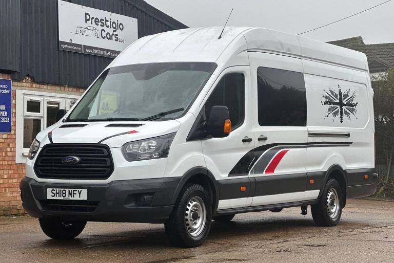AWARD-WINNING DEALERSHIP - 4 YEARS RUNNING! ? FREE DELIVERY WITHIN 100 MILES 3 MONTHS WARRANTY INCLUDED 250+ VEHICLES IN STOCK KEY VEHICLE FEATURES: - NO VAT - 2 PREVIOUS OWNERS - JUST FULL SERVICED - FORD TRANSIT HIGH ROOF CONVERTED FOR 2 BERTH, BEAUTIFULLY LAYOUT FOR 2 BERTH WITH 3 SEATS, ALL ELECTRIC CONNECTION WIRED, - MOT VALID UNTIL 12/08/2026 - 6 SEATS - AA DEALER PROMISE - HPI CLEAR - WARRANTED MILEAGE - AUX / USB / BLUETOOTH CONNECTIVITY - SMOOTH ENGINE & GEARBOX - GOOD FUEL ECONOMY - VERY CLEAN BODYWORK (WELL MAINTAINED FOR ITS AGE) - CLEAN INTERIOR WITH GOOD TYRES - INDOOR VIEWING AVAILABLE WARRANTY & DELIVERY: 3 MONTHS STANDARD WARRANTY INCLUDED EXTENDED WARRANTY AVAILABLE (6 / 12 / 18 MONTHS) FREE DELIVERY WITHIN 100 MILES (£2/MILE THEREAFTER) PART EXCHANGE WELCOME WE ACCEPT PART EXCHANGES ON ALL MAKES AND MODELS. GET IN TOUCH FOR A QUICK VALUATION. WHY BUY FROM PRESTIGIO CARS & VANS? FCA REGISTERED 4X AWARD-WINNING DEALERSHIP OVER 250 USED CARS & VANS IN STOCK LOCATED BETWEEN MILTON KEYNES & BEDFORDSHIRE (M1 J13) TRUSTED & TRANSPARENT DEALER GREAT SELECTION OF CARS & VANS TO SUIT ALL BUDGETS OPENING HOURS: MON-SAT: 09:00 - 17:30 SUNDAY: 10:00 - 16:00 VISIT US: JUST OFF M1 JUNCTION 13, NEAR THE RAJAPACK WAREHOUSE MORE VEHICLES & INFO: VISIT OUR WEBSITE WWW.PRESTIGIOCARS.CO.UK Features Include: , tyre pressure monitoring system, 16in steel wheels, 236 degree opening rear cargo doors, 8-way driver seat with fore-aft - recline -height and tilt, airbags - driver, anti-lock braking system - abs with electronic brake force distribution - ebd, armrest - drivers, assist handle - located on b-pillar, auxiliary connection point - 1x12v - 60a connection located under driver seat pedestal, battery - cold start -20 degree c, battery - single absorbent glass mat - agm, bodyside mouldings - wide - self colour, bottle holder - twin 2 litre bottle capacity - facia-mounted, bulkhead - full steel, bumper - front body colour - partial, courtesy lights - header-mounted front with theatre dimming, curve control, daytime running lamps, door handles - self coloured, door mirrors - blind spot eliminator and integrated side indicator, door mirrors - manual adjust, doors - passengers sliding side load door and step, doors - unglazed rear doors - hinged for widest opening with magnetic door retentioners, driver seat belt minder, dual-circuit front and rear discs with self-adjusting servo-assistance and abs, eba - emergency
