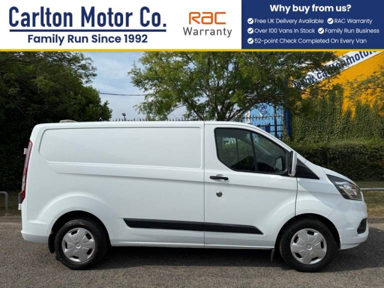 FORD TRANSIT CUSTOM 2.0 EcoBlue 340 TREND L1 H1 [ Mobile Workshop ] Panel Van Fwd Cruise control, Ex leasing company Light use fully documented service history printout Automatic headlights electric windows & mirrors Front rear parking sensors Heated front screen internally fully racked out, high-security locks Ready for work !! Excellent selection of Commercial vehicles around 100+ in stock, box vans Chassis Cab, Tipper, Pickups, Dropside, Double-Crew cab, T/Lifts, Luton Minibuses 5-17 Seat Specialist builds, Chiller Refrigeration, Welfare Mobile Workshop units, Beavertail, Crane / Swing +T/Lift, Caged+ Refuge bodies, All our vehicles are prepared to the highest standards, Pre-Delivery inspection, Mot / Oil & filter if required, Full dealer facilities Low rate finance available, Also offer Free UK Delivery, [ We are family owned and run since 1992 ] + VAT We only got bigger by been better- Leaders not followers, Every effort has been made to ensure the accuracy of the above information but errors may occur. Please check with our team,.Guide me home headlights, 2 12v sockets, 2 adjustable sunvisors, 2nd remote key, 3 point seatbelts for all seats, 4 speakers, 80 litre fuel tank, ABS, Adjustable steering column, Alternator - 150A, Audio controls mounted on steering wheel, Auto locking on drive-away, Auto relocking, Automatic lights and wipers, Aux input socket, Body coloured front bumper, Cloth upholstery, Configurable interior lighting/battery saver - 30 minutes, Courtesy light, Daytime running lights, Diesel particulate filter, Drivers airbag, Drivers seat with lumbar adjustment, Easy clean load floor, Easy fuel capless refuelling system, Electric front windows with one touch facility for driver and front passenger, ESP + EBA, Fixed bending lights, Ford Eco mode, Front and rear parking aid + front fog lamps, Front mud flaps, Front seatbelt pretensioners, Full wheelcovers, Glovebox with lid, Half height load compartment trim boards, Headlamp levelling, Height adjustable drivers seatbelt mount, Height adjustable front headrests, Illuminated footwell, Intermittent front wash/wipe, Map reading lights, Moulded cab headlining, PAS, Passenger seatbelt height adj, Power door dead locks, Power folding electric heated and adjustable door mirrors, Power point, Projector headlamps, Rear mudflaps, Recirculation heater, Remote central locking, Roll stability control, Rubber floor covering, Side wind mitigation, Split folding backrest in passenger seat, Static cornering lights, Tie-down loops, Trip computer, Underseat storage compartment