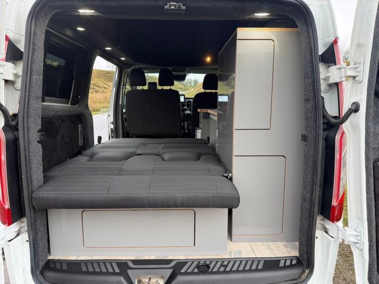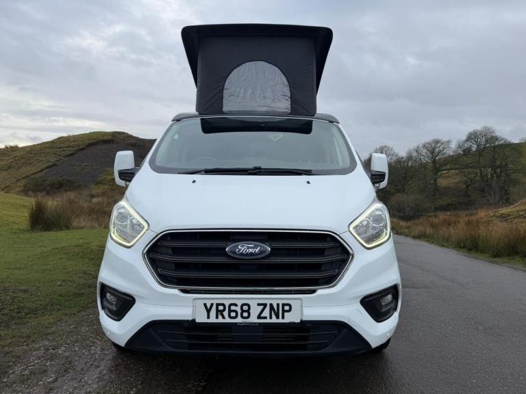 2018 Ford Transit Custom Camper Van – 4 Berth – Limited – High Spec ConversionThis 2018 Ford Transit Custom 2.0 300 EcoBlue Limited L1 H1 Euro 6 has been professionally converted into a high-quality 4 berth camper van, offering an excellent blend of everyday drivability and full camper capability.With just 55,000 miles, 1 previous owner, and a clear vehicle history check, this van presents an outstanding ownership proposition. Powered by the strong 2.0-litre EcoBlue diesel engine producing 168 bhp, it offers noticeably better performance than many comparable vans, while remaining Euro 6 compliant.Base Vehicle HighlightsLimited trim levelFront & rear parking sensorsFront fog lampsSeat Pack 25 with heated driver and passenger seatsSmooth, powerful 168 bhp engineCamper Conversion – 4 Berth SpecificationThis camper has been thoughtfully designed and built using premium components throughout:Electrical & PowerVictron DC-DC chargerVictron Smart Solar charger200W Renogy solar panelCBE PC180 control unitCBE USB-C & USB-A chargersCBE 12V power socketsCBE 230V mains socketsUnder-seat 120Ah leisure batteryMains electric hook-up (240V)Mains power supply with fob & BluetoothKitchen & UtilitiesDomestic hob and sink12V leisure fridgeBluetooth Samsung fridge (app-controlled)Shurflo water pump73L fresh water tank41L waste water tankMains water refilling portBrand new 907 Camper Gas kit with cabinetHeating & ComfortDiesel heater with Bluetooth control, plumbed directly into the main fuel tankAwning lightLED under-counter lightingTouch LED cupboard lightsSpotlights throughout, including bed areaSeating & SleepingFabworx crash-tested rock and roll bedRock and roll bed fabricated in factory style to match front seatsSwivel king double passenger seat base (crash tested)Passenger heated swivel seat (heating plug being adapted to remain fully functional)Pop-top with USB and lighting in bed area4 berth camper layoutInterior & Build QualityCNC-cut birch wood heavy-duty camper furnitureHigh-gloss mod