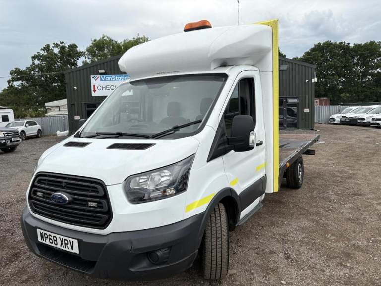 Model: 68 plate Ford Transit 350 flat bed chassis cab recovery 60k miles rear air suspension Euro 6 Vat Inclusive Body: White - Flatbed Mileage: 60512 MOT: 26th March 2026 Engine: 1996cc 2.0 TDCI 130PS Transmission: 6 Speed Manual - RWD Mechanical Summary: