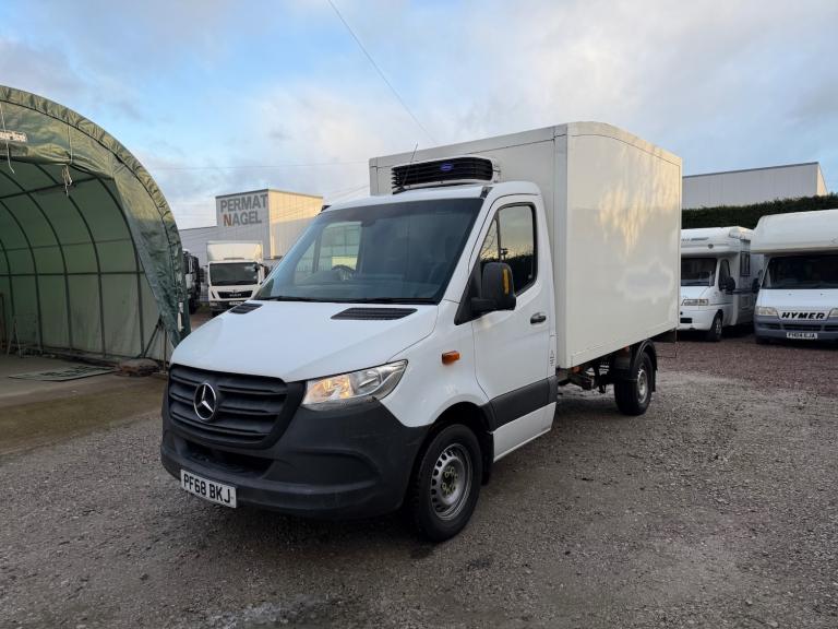 A clean and well-presented 2018 Mercedes-Benz Sprinter 3.5-tonne refrigerated box van, finished in white and ready to go straight to work. Fitted with a smooth automatic gearbox, making it ideal for long days and city driving alike.The van comes equipped with a rear reverse camera and audible reversing buzzer, making manoeuvring and parking much easier and safer. The refrigerated box is perfect for food, catering, pharmaceutical or temperature-controlled transport.Best of all, there is NO VAT to be added to the price, making this a very cost-effective and cheap van compared to others on the market.A solid, reliable workhorse that represents great value.Contact us today for more information or any general enquiries.