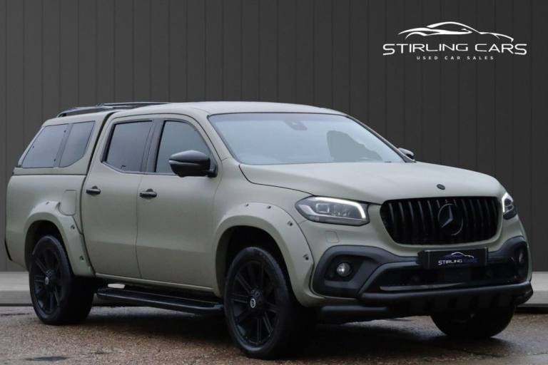 2018 (68) Mercedes-Benz X-Class 2.3 CDI Power Double Cab Pickup finished in an eye-catching military green wrap, with the original silver paintwork underneath. This automatic 4MATIC model produces 190 ps and is fully Euro 6 compliant, offering strong performance both on and off road. The vehicle has covered low miles and comes with a full Mercedes-Benz service history recorded on the Mercedes database. It has just been serviced and is presented in excellent condition throughout, with an immaculate interior. It has had 2 previous owners. Specification includes heated leather seats, satellite navigation and media system, rear camera with 360 degree surround view, privacy glass and a GT upgraded front grille, wolfrace alloys. A front bumper bar is also fitted, adding to the rugged appearance. Fitted with a rear canopy and storage tub, providing secure and practical load space. Supplied with MOT and warranty included for added peace of mind. NO VAT on vehicle. A well cared for and high specification X-Class Power, combining premium Mercedes-Benz comfort with pickup practicality. Viewing and test drive welcome.hahahah ALL CARS COME WARRANTED WITH THE OPTION TO EXTEND FOR UP TO 3 YEARS AT A LOW COST. ALL VEHICLES INCLUDE BREAKDOWN COVER FOR THE FULL TERM OF THE WARRANTY. Warranty extensions can also be paid over 10 monthly instalments for added convenience. We now also offer a tyre, alloy and smart repair package; please see the pictures or contact us for more information. This package is available for 3 years at £989 per year and covers any alloy, tyre, or smart repair damage your vehicle may incur. [Website URL removed] At Stirling Cars, we take pride in offering over 100 quality used vehicles, each carefully selected and prepared to the highest standard. Every car goes through a thorough inspection process, comes with a valid MOT, and includes a comprehensive warranty for your peace of mind. We believe in doing things right from the moment a car arrives to the moment you drive it away. It’s prepped to perfection and ready to go..Extended Warranty Available, Ceramic Paint Polish Avaliable , Low Miles & Full Mercedes History , Military Green Wrap & 360 Camera & Navi, GT Front Grill & Bumper Bar, All-Season - Winter Tyres, 12V Socket, 18in Alloy Wheels - 6-Twin-Spoke - Himalaya Grey, 8-Speaker Sound System, ABS - Anti-Lock Braking System, Active Brake ASSIST, Airbag - Drivers Knee, Airbags - Driver and Front Passenger, Airbags - Thorax for Driver and Passenger, Aluminium Door Sills featuring Mercedes-Benz Lettering, Audio 20 CD Infotainment System, Automatic Dimming Interior Mirror with Integrated Compass Function, Carpet Flooring, Centre Console with Large Storage Compartment - Armrest and Cup Holder, Chrome Air Vents, Comfort Suspension, Comfort Turn Signal - 3-Flashes, Cruise Control, DAB Digital Radio Tuner, Dashboard in ARTICO Leather with Topstitching, Daytime Running Lights, Door Handles - Chrome, Door Mirrors - Electrically Adjustable-Folding-Heated, Double Wishbone Front Suspension, Drivers Seat - 8-Way Electrically Adjustable, Dynamic Select, ESP - Electronic Stability Programme, Electric Windows - Front, Electrical Auxiliary Heating, First Aid Kit and Warning Triangle, Front Fog Lights with Chrome Surround, Front Passenger Seat - 8-Way Electrically Adjustable, Heat Insulation for Windscreen with Filter Band, High Level Third Brake Light - LED, Hill Start Assist, Illuminated Sun Visors on Driver and Passengers Side, Instrument Cluster with Colour Display, Instrument Dials with Round Covers, Integrated Radio Aerial, Interior Trim - Aluminium, KEYLESS-GO Starting Function, LED High Performance Headlights with Cleaning System, LED Load Area Lighting, LED Tail Lights, Lane Keeping Assist, Leather Gear Shift Lever and Handbrake Lever, Leather Steering Wheel with Chrome Highlights, Lighting for the Front Footwell and Exit Lamps, Live Traffic Information, Load Securing Rail System, Lumbar Support - Front Seats, Mercedes Me Connect - Standard Services, Multi-Link Rear Suspension, Multifunction Steering Wheel - Manually Adjustable, Painted Bumpers with Simulated Under Guard in Chrome, Power Steering, Pre-Wiring for Garmin Map Pilot Navigation System, Rain Sensing Windscreen Wipers, Rear Bumper in Chrome with Integrated Step, Reversing Camera, Seatbelt Reminder and Automatic Front Passenger Airbag Deactivation, Shoulder Line Trim Strips - Chrome, Spare Wheel, Stowage Net in Front Passenger Footwell, Summer Tyres, THERMOTRONIC - Automatic Climate Control, Tie-Down Loop