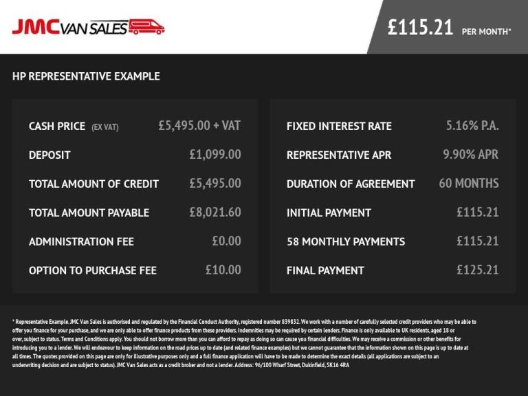 JMC VAN SALES WITH 100+ USED VANS MAINLY 1 OWNER FULL SERVICE HISTORY ALL ON ONE SITE PLEASE CHECK SERVICE HISTORY AND OWNERSHIP BEFORE ORDERING SITE OPENING 6 DAYS A WEEK WE ARE ONE OF THE NORTH WEST LARGEST USED VAN DEALERS, ALL OUR VANS COME WITH 6 MONTH WARRANTY WITH 24 MONTHS AVAILABLE,FOR YOUR REASSURANCE EVERY VAN COMES WITH A FULL HPI REPORT AND VOSA MILES REPORT, OPEN 6 DAYS, PART EXCHANGE IS WELCOME CARS OR VANS ,WE ARE BLACK HORSE MOTONOVO CLOSE MOTOR FINANCE AND SANTANDER APPROVED DEALER AND CAN OFFER FINANCE , CALL ONE OF ARE SALES TEAM SK Vans Limited T/A JMC VAN SALES is a credit broker and not a lender. Whichever lender we introduce you to, we will typically receive commission from them. The lenders we work with could pay commission at different rates. However, the amount of commission we receive from a lender does not have an effect on the amount you pay to that lender under your credit agreement. Please ask if you need further information.WHAT TO EXPECT FROM JMC , 6 MONTHS WARRANTY & 12 MONTHS MOT , FULL SERVICE PRIOR TO COLLECTION , SAME DAY LOW RATE VAN FINANCE STS , BEST PRICE ON PART EXCHANGES CARS OR VAN, 12v Power Socket (Front), 15in Script Wheels, 2x15W Radio and CD Player with AUX Input, 6 Anchorage Points in Load Area, ABS, Airbag - Driver, Bluetooth, Central Storage Tray Between Front Seats, A4 Storage in Dashboard, DAB Radio, Deadlocking, EBD (Electronic Brake force Distribution), ESC (Electronic Stability Control), Electric Front Windows, Electric Variable Power - Assisted Steering, Electrically Operated Door Mirrors, Electronic Immobiliser/R.A.I.D (Renault Anti Intruder Device), Front and Rear Grey Bumpers, Full Steel Bulkhead, Grey Side Protection Mouldings, Head Restraints - Front, Height - Adjustable Drivers Seat, Height - Adjustable Seatbelts with Pretensioners and Load Limiters, Height Adjustable Steering Wheel, Hill Start Assist and Grip Xtend, Left Side Loading Door - Unglazed, Manual Air Conditioning with Pollen Filter, Overhead Central Light Console & Load Area Lighting, Rear Doors - Unglazed, 180 Asymmetric, Remote Central Locking (2 Button Key), Spare Wheel, Standard Bumper, Third Brake Light, Trip Computer, Two Speakers 2x15W, USB, Upholstery - Titanium Dark Cloth Upholstery