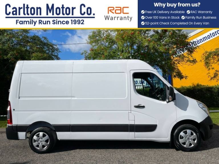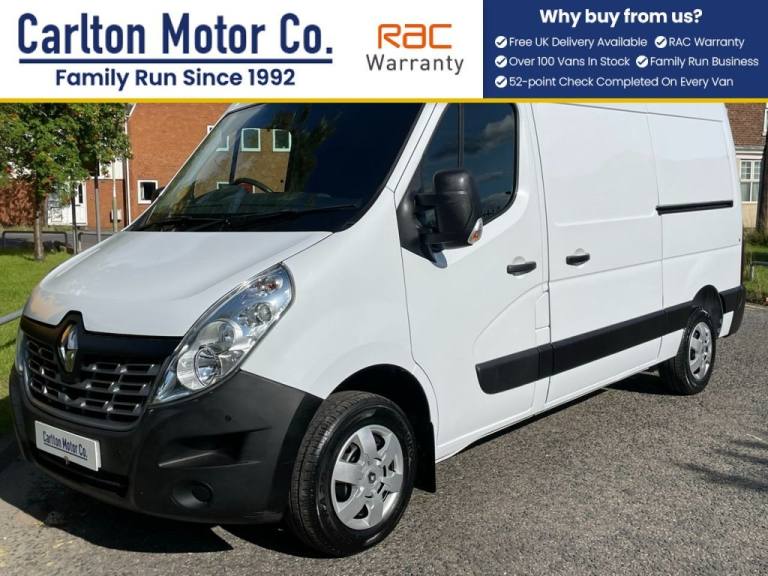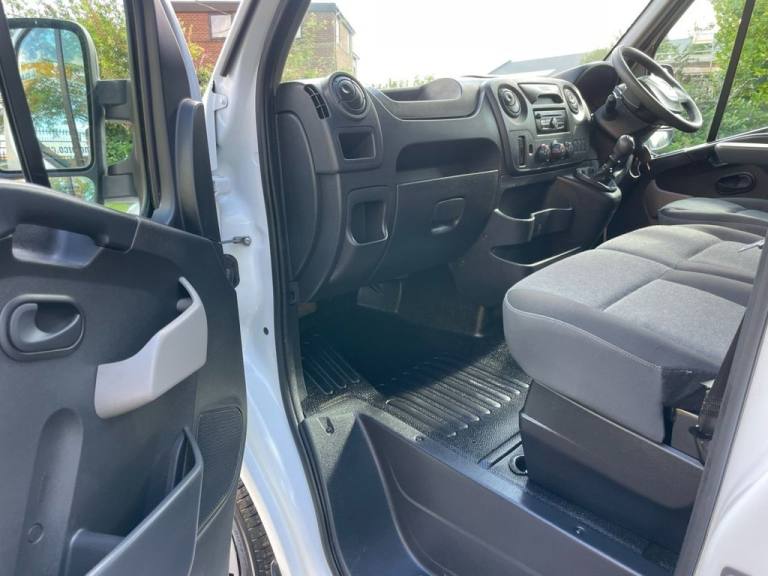 RENAULT MASTER MM33 ENERGY DCI 110 BUSINESS PLUS MEDIUM ROOF VAN FWD EURO 6 [ AIR CON + SAT NAV ] Direct to us from lease company with full-service history maintenance printout, electric windows & mirrors, DAB Radio Cd Bluetooth USB point, overhead storage , traction control part sensors Eco mode s/s Rear barn doors, ply lined Every effort has been made to ensure the accuracy of the above information but errors may occur. Please check with a salesperson Excellent selection of Commercial vehicles around 100+ in stock, box vans Chassis Cab, Tipper, Pickups, Dropside, Double-Crew cab, T/Lifts, Luton Minibuses 5-17 Seat Specialist builds, Chiller Refrigeration, Welfare Mobile Workshop units, Beavertail, Crane / Swing +T/Lift, Caged+ Refuge bodies, All our vehicles are prepared to the highest standards, Pre-Delivery inspection, Mot / Oil & filter if required, Full dealer facilities Low rate finance available, Also offer Free UK Delivery, [ We are family owned and run since 1992 ] + VAT We only got bigger by been better- Leaders not followers, Every effort has been made to ensure the accuracy of the above information but errors may occur. Please check with our team,.10 floor mounted load anchorage point, 12V accessory socket, 12v socket in loadspace, 180 degree glazed rear doors and heated rear window, 3 point height adjustable seatbelts with pretensioners, ABS +EBD, Alarm Predisposition, Aux input socket, Blue and me, Bluetooth connectivity, Centre console with twin cupholders, Clipboard holder, Dashboard storage compartment lid, Deadlocks, Driver seat lumbar support, Driver side electric window with one touch, Drivers armrest, Drivers airbag, Drivers seat with lumbar adjustment, Dual split underseat storage compartment with pivoting seatback table, Electric windows with electric/heated door mirrors, Electronic immobiliser, ESC - load adaptive with understeer control, ESP + Hill start assist, Funaia cloth upholstery, Glazed rear quarter windows, Glovebox with lid, Hands free key - 2 button, Height adjustable steering wheel, Large wheel stylers, Overhead storage compartment, Passenger seat bench, Remote central locking, Side loading door-left and right glazed, Spare wheel, Trip computer, USB connection, Wide angle mirror