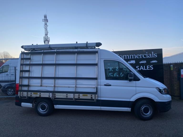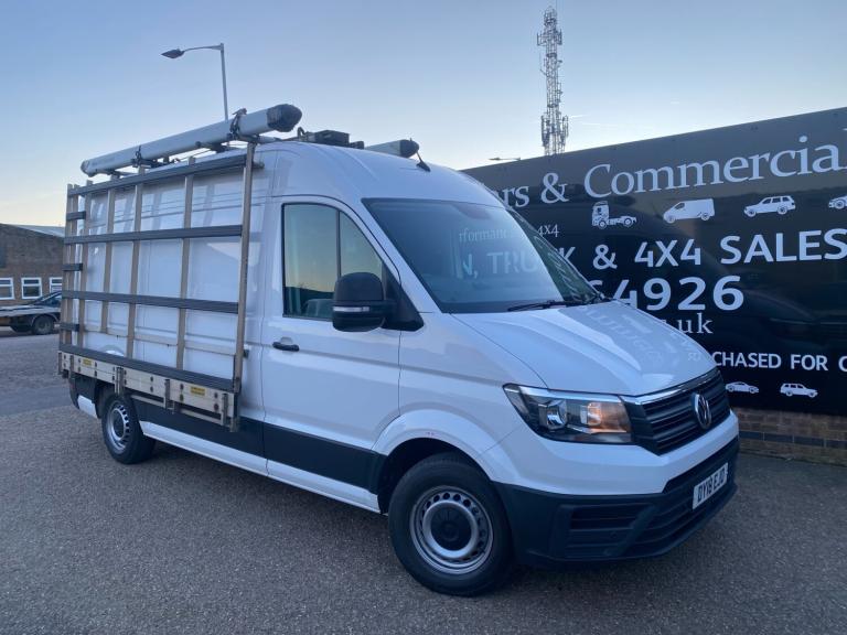 2018 18reg VW CRAFTER CR35 3.5 TONNE 2.0 TDI 140 BHP TURBO DIESEL BLUEMOTION 6 SPEED MWB L2H2 GOOD SPEC PANEL VAN COVERED 129732 MILES BY 1 COUNCIL OWNER FROM NEW. FULL VW MAIN VAN DEALER SERVICE HISTORY. SUPERBLY MAINTAINED AND LOOKED AFTER. JUST HAD MAJOR SERVICE WITH NEW BATTERY AND GLOW PLUGS BY VW MAIN VAN DEALER AT 128916 MILES ON 20/01/2026. CURRENT MOT VALID TILL 03/04/2026. FULL 12 MONTHS MOT UPON SALE. 6 MONTHS NATIONWIDE PARTS AND LABOUR WARRANTY. STANDARD VAN TAX BAND 12 MONTHS PRICED 345 POUNDS.10 FOOT / 3.05 METRE LONG X 6 FEET / 1.85 METRE HIGH PROFESSIONAL ALUMINIUM GLAZING / SHEETING RACK WITH RUBBER CUSHIONS. RHINO PROFESSIONAL EASY LOAD DROP DOWN ROOF LADDER RACK WITH TWIN PIPE LENGTHS TUBE CARRIERS. REAR STORAGE SHELVING STORAGE UNITS. 1000W HEAVY DUTY POWER INVERTER WITH TWIN POWER SOCKET. SOLID CANDY WHITE PAINTWORK. SUPERB ECONOMY 40+MPG ON A RUN. HIGH SECURITY DEADLOCKS. SPARE KEYS. AIR CON. FRONT ASSIST. PARKING SENSORS FRONT AND REAR. BLUETOOTH TELEPHONE & AUDIO CONNECTIVITY. SD CARD AUX IN USB MUSIC MEDIA CONNECT. ELEC HEATED MIRRORS. ELEC WINDOWS. REMOTE CENTRAL LOCKING. FULL SIZE FACTORY FITTED BULKHEAD. PLYLINED IN REAR WITH WOOD FLOOR. OVERHEAD STORAGE TO CAB. UNDERSEAT STORAGE. DRIVES BEAUTIFULLY. 180 DEGREE OPENING REAR DOORS. REALLY NICE WELL LOOKED AFTER VAN. DRIVES BEAUTIFULLY. 3000KG TRAILER PULL CAPACITY. UNLADEN WEIGHT 2089KG. 1411KG PAYLOAD CAPACITY. FULL SIZE SPARE WHEEL. DECENT AVON TYRES ALL ROUND. 3.48 METRE / 11 FEET 5 INCHES INTERNAL LOAD LENGTH. CHOICE OF QUALITY USED HAND PICKED COMMERCIALS IN STOCK NOW. CHOICE OF PANEL VANS, TIPPERS, DROPSIDES, LUTONS, PICK UP'S, CREW CABS, SINGLE CABS ALL IN STOCK NOW. FOR MORE PICTURES AND TO VIEW FULL STOCKLIST PLEASE VISIT DEALER WEBSITE.