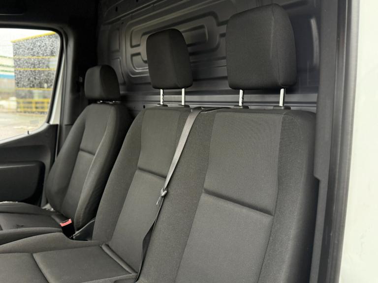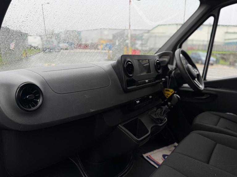 This 2019 69 registration Mercedes Benz Sprinter 314 CDI MWB L2H2 is finished in white, has covered 150,000 miles and is priced at £10,995 plus VAT, offering excellent value for a modern, ULEZ compliant work van. Powered by a 2.1 diesel engine with Euro 6 emissions and front wheel drive, it is ideal for city and motorway use alike. The van comes well equipped with cruise control, multifunction steering wheel, electric front windows, power assisted steering and ATTENTION assist, while the MBUX 7 inch touchscreen infotainment system includes Apple CarPlay, Android Auto, DAB radio, Bluetooth and USB C connectivity. Practical features include a full width bulkhead, wood lined load area, sliding side door, twin rear doors opening to the side wall, interior load lighting and a dual passenger seat, making it perfectly suited for trade or delivery work. Safety systems such as ABS, ESP, active brake assist, crosswind assist and hill start assist add further peace of mind, making this Sprinter a dependable and well specified MWB high roof panel van ready to go straight to work.