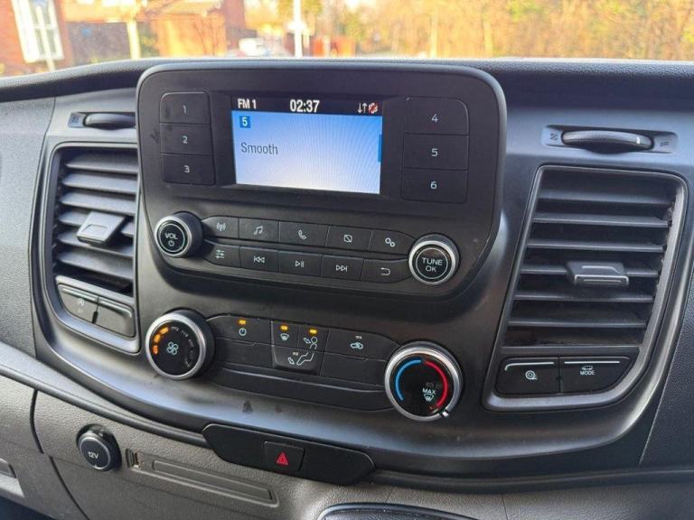 , 16in Steel Wheels, Airbags - Driver, Alternator - Standard Duty 165Amp, Anti-Lock Braking System - ABS - with Electronic Brake-Force Distribution, Assist Handle - Located on B-pillar, Auxiliary Connection Point - 1x12V - 60A Connection Located Under Driver Seat Pedestal, Battery - Cold Start -20 Degree C, Bluetooth, Bodyside Mouldings - Wide - Self Colour, Bottle Holder - Twin 2 litre Bottle Capacity - Facia-Mounted, Bulkhead - Full Steel, Courtesy Lights - Header-Mounted Front with Theatre Dimming, Curve Control, Daytime Running Lamps, Door Handles - Self Coloured, Door Mirrors - Blind Spot Eliminator and Integrated Side Indicator, Door Mirrors - Manual, Doors - Unglazed Rear, Doors - Unglazed Rear Doors - Hinged for 180 Degree Opening - Positive Stop At 90 Degree, Dual-Circuit Front and Rear Discs with Self-Adjusting Servo-Assistance and ABS, Easy Clean Floor - Cab, EBA - Emergency Brake Assist, Electric Windows - Front with One Touch Lowering Drivers, Emergency Brake Warning, ESC - Electronic Stability Control, Fold Out Front Passenger Seat Table, Ford Easy-Fuel Capless Refuelling System, Ford Eco Mode - Driver Information System, Ford SYNC with 4.2in TFT Screen, Front - Independent MacPherson Struts - Coil Springs - Stabiliser Bar and Gas-Pressurised Shock Absorbers - Rear - Leaf Springs and Gas-Pressurised Shock Absorbers, Front Bumper - Self Colour, Front Grille - Sterling Grey, Gearshift Indicator Light, Glovebox - With Lid and A4 File Storage Capability, Headlights - Halogen Projector with Black Backgroud, Headlights Courtesy Delay - 30 Seconds Duration, Headlining - Cab - Moulded, Heater - Positive Thermal Coefficient - PTC, Heavy Duty Alternator, Hill Start Assist, ICE Pack 17, Immobiliser - Safeguard Passive Anti-Theft System - PATS - Insurance-Approved Category 2 Immobiliser, LAC - Load Adaptive Control, Less Easy Clean Floor, Less Steel Spare Wheel, Liftgate - Cargo Door Handle - Self Colour, Load Compartment - DIN 75410 Compliant Tie-down Loops, Loadspace Compartment Light, Locks - Audio Mislock Feedback - Audible Signal if a Door is Ajar When Locking Activated, Locks - Auto Locking on Drive-Away - Doors Automatically Lock at 8 kmh or 5 mph, Locks - Auto Relocking - Doors Relock after 45 Seconds if no Door is Opened, Locks - Configurable Unlocking, Locks - Key Operated Bonnet Release, Locks - Power Door Deadlocks - Shielded with Strengthened Mountings, Mudflaps - Rear, Overhead Storage Shelf, Passenger Side Sliding Load Door - Solid, Power Assisted Steering, Power Point Socket - 2x 12V, Radio with Remote Stalks, Rear Bumper - Self Colour with Integrated Step, Remote Central Door Locking with Deadlocks, Remote Central Locking with One Key Fob, RSC - Roll Stability Control, Seatbelts - 3 Point Diagonal Inertia Reel - All Seats, Seats - Drivers 4-Way Adjustment with Armrest, Seats - Dual Passenger, Selectable Drive Mode, Side Wind Mitigation, Single AGM Battery, Steering Column - Rake and Reach Adjustment, Steering Wheel - 4 Spoke Polyurethane, Storage - Drivers Side - Storage Compartment on Facia Top with Lift Up Lid, Storage - Front Door Map Pockets, Storage - Underseat Stowage Compartment Under Dual Passenger Seat, Trip Computer, Tyre Inflator Kit, Vehicle Identification Number - VIN - Visible, Vehicle Maintenance Monitor, Water in Fuel Filter with Sensor, Wheel Covers - Half Caps, Wipers - Front - Variable Interval-Intermittent with Electrically-operated Wash