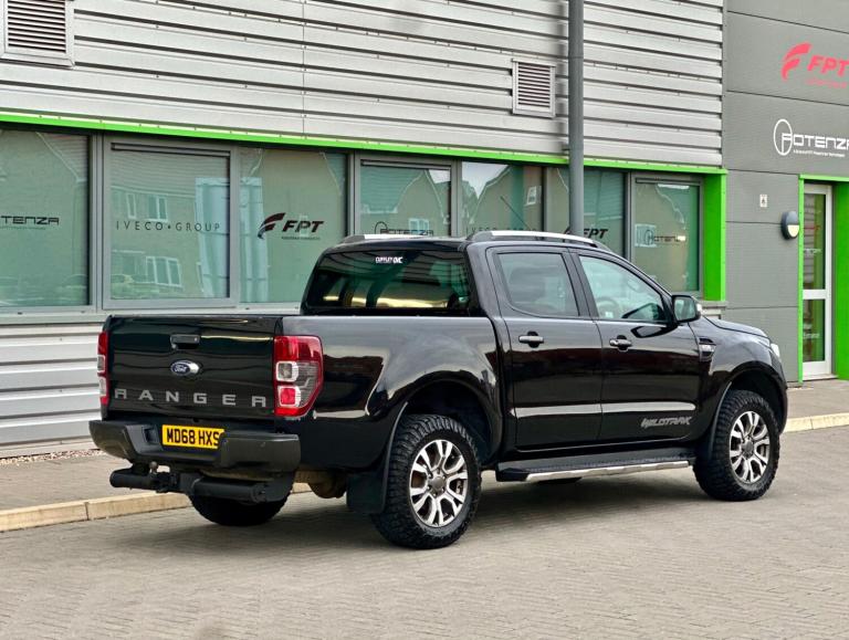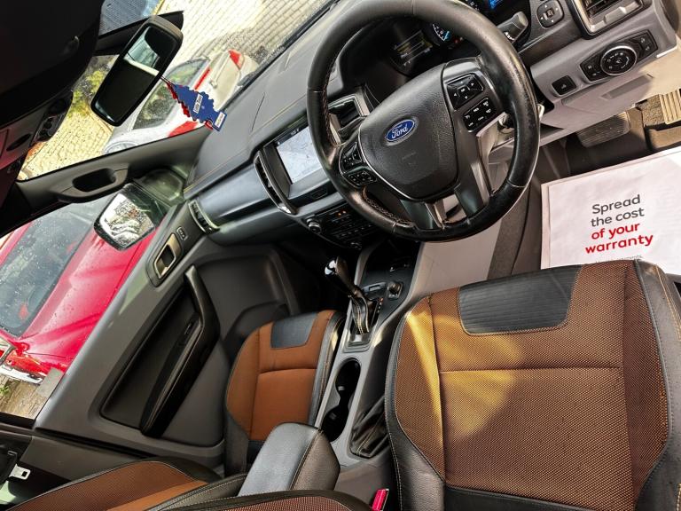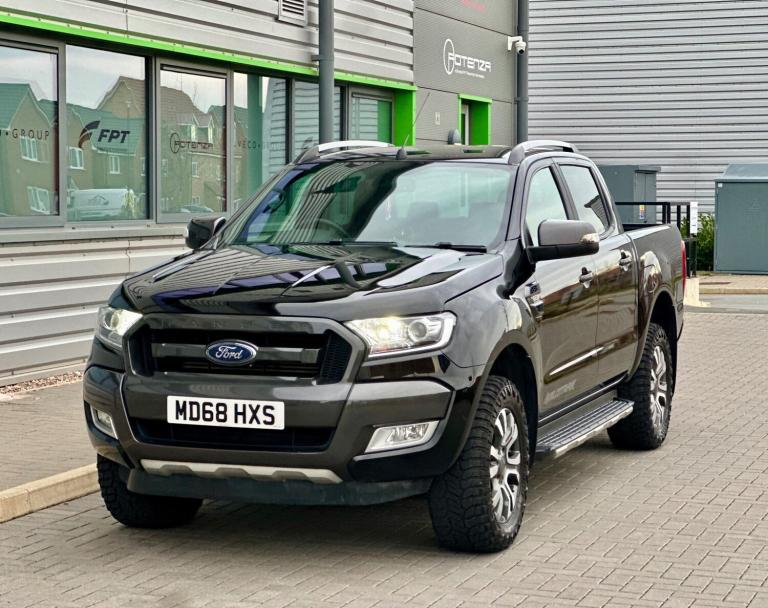 This 2019 Ford Ranger Wildtrak boasts a recent full service completed on 27th January 2026 at 94,500 miles, ensuring it is ready for its next adventure. service history, 2 keys, 2 previous owners, This robust 3.2 TDCi Wildtrak Auto 4WD Euro 5 4 door model is equipped with a powerful 3.2 litre diesel engine and a four wheel drive drivetrain, making it capable of handling demanding tasks. It also features a fixed towbar with a towing weight of 3500 kg, ideal for hauling trailers or caravans. For added convenience and comfort, this Ranger includes front heated seats, automatic headlights, xenon headlamps, and Bluetooth audio streaming. A 3 month nationwide warranty is also included for your peace of mind which can be extended. The Wildtrak trim level of this Ford Ranger offers a superior driving experience compared to other similar vehicles. The inclusion of front parking sensors aids manoeuvrability in tight spaces, while the heated seats provide extra comfort during colder journeys. The automatic headlights ensure optimal visibility without driver intervention, and the Bluetooth connectivity allows for seamless audio streaming and hands free calls. These features combine to make this 2019 Ford Ranger Wildtrak a well equipped and practical choice for both work and leisure.