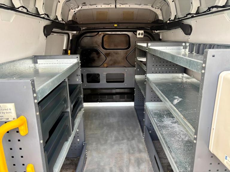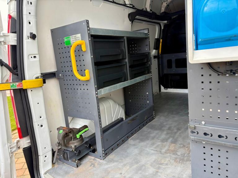 Then in the rear of this van it has had a small fortune spent on it converting it to a mobile fitters van with Bott racking down both sides, storage boxes, heavy duty slide out vice, hot water hand wash, extra LED internal lights, roof mounted fresh air roof vent, LED amber flashing lights, extra high security locks, etc.
