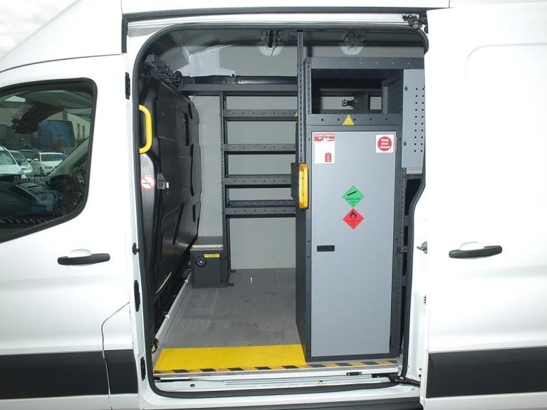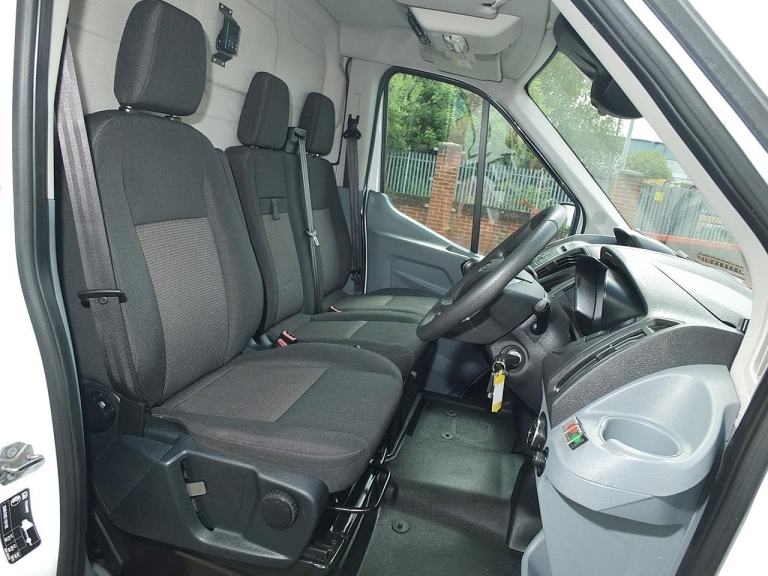 N/S Sliding Side-Loading Door, Unglazed Twin Rear Doors, 3 Seats - Double Passenger Seat with Fold-out Table, Split Lift-Up Seat Cushion & Underseat Stowage Compartment, Integrated Rear Bumper Step, Tyre Repair Service Kit, Daytime Running Lamps, L2 Medium Wheelbase 3.5 tonne / 3500 kg GVW High Top Mobile Workshop Van, 970kg Payload, Ford 'Easy Fuel' Capless Refuelling System, Hill Start Assist, Driver & Passenger Airbags with Passenger Deactivation Switch, ABS with Curve Control, ESP-Plus, EBD (Electronic Brakeforce Distribution), ESC (Electronic Stability Control), LAC (Load Adaptive Control), ROM (Roll Over Mitigation), Traction Control, Power-Assisted Steering (PAS), Remote Central Locking with Deadlocking,