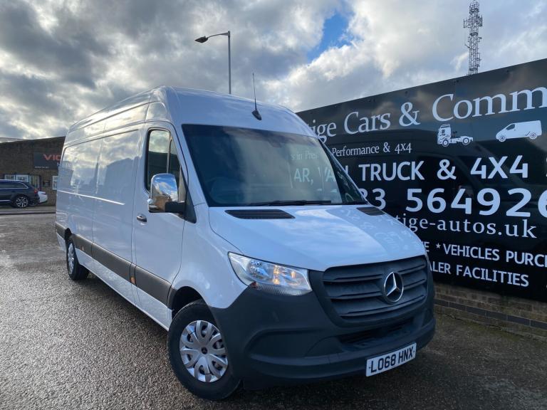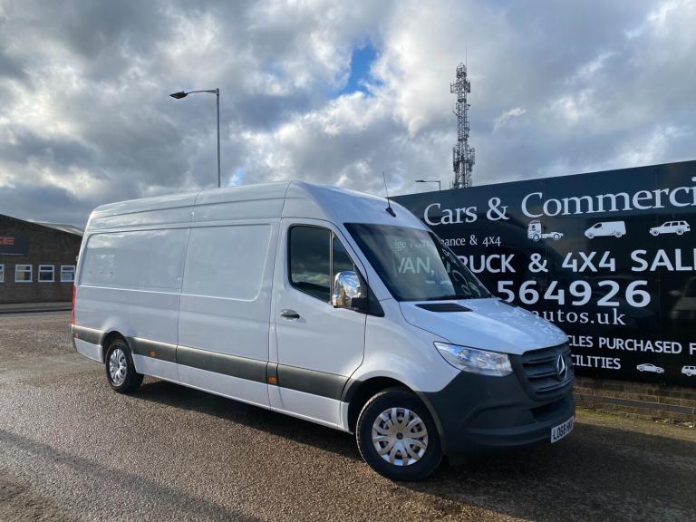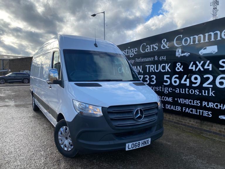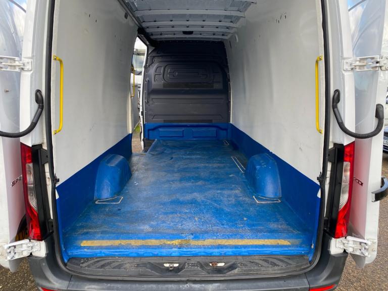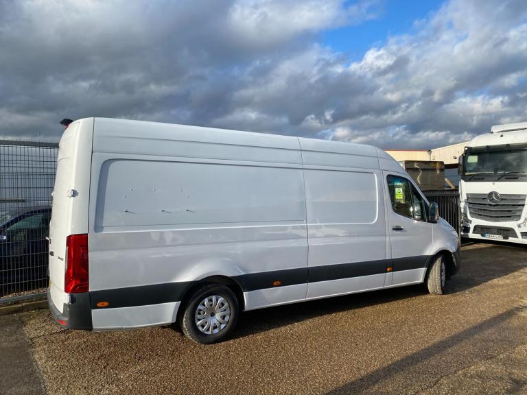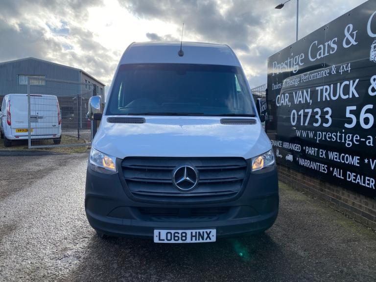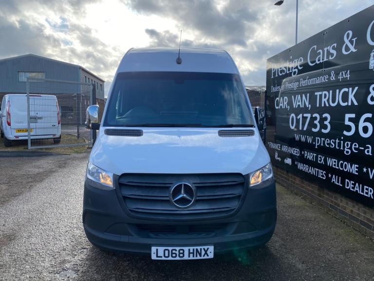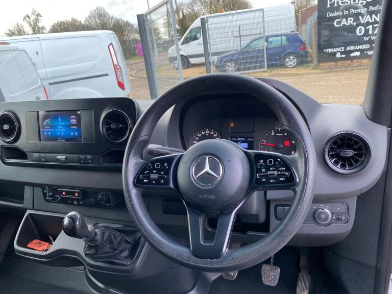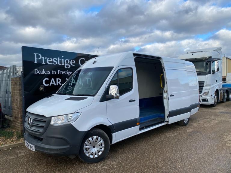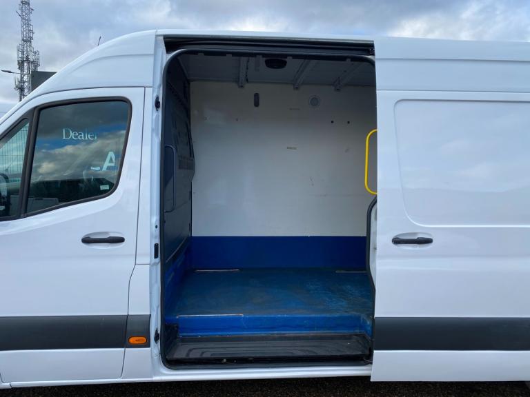 2019 68reg MERCEDES SPRINTER LWB LONG WHEEL BASE HI ROOF PANEL VAN COVERED 140116 MILES. 2.1 CDI 143 BHP TURBO DIESEL WITH 6 SPEED GEARBOX REAR WHEEL DRIVE. 1 LAUNDRY COMPANY OWNER FROM NEW WITH FULL MERCEDES MAIN VAN DEALER SERVICE HISTORY. ONLY BEEN USED TO TRANSPORT COMMERCIAL LINENS SO NOT HAD HARD LIFE. PLASTIC LINED AND INSULATED REAR LOAD AREA WITH FULLY SEALED FLOOR. VERY WELL LOOKED AFTER HENCE DRIVES SUPERB. 6 MONTHS NATIONWIDE PARTS AND LABOUR WARRANTY ALL INCLUDED IN THE PRICE. CURRENT MOT VALID TILL 01/02/2026, FULL 12 MONTHS MOT UPON SALE ALONG WITH FULL SERVICE USING GENUINE MERCEDES FILTERS AND OIL. FACTORY FITTED FULL COLOUR REAR VIEW CAMERA. CRUISE CONTROL. 2 KEYS. ACTIVE BRAKE ASSIST. DAB DIGITAL RADIO. ANTI THEFT DOUBLE LOCKING. BLUETOOTH TELEPHONE+AUDIO INTEGRATION. USB AUX IN MUSIC INTERFACE. DAYTIME RUNNING LIGHTS. ADAPTIVE BRAKE LIGHTS. STANDARD ROAD TAX BAND 12 MONTHS PRICED 345 POUNDS. 1089kg PAYLOAD CAPACITY. 2000 KG TRAILER PULL CAPACITY. 5500 KG TRAIN WEIGHT. SUPERB ECONOMY, BEST IN CLASS. HILL START ASSIST. CROSSWIND ASSIST. SHIFT POINT INDICATOR. OVERHEAD STORAGE SHELVING TO CAB. UNDERSEAT STORAGE. 3 SEATER CAB. CUP HOLDERS. SIDE MARKER LIGHTS. 65MPH SPEED LIMITER (CAN BE REMOVED BY US IF REQUIRED) FULL SIZE SPARE WHEEL. Bluetooth connection, Cruise control, PAS, Service indicator, Steering wheel mounted controls, Trip computer, Auxiliary input socket, Mobile phone App interface, OEM sound system, USB/iPod interface, Front electric windows, Front head restraints, Solid Paint, ABS, Drivers airbag, ESP, Traction control, Alarm, Immobiliser, Remote central locking, Cloth seat trim. GREAT VALUE FOR MONEY LATE MODEL SPRINTER. DRIVES LOVELY. CHOICE OF HAND PICKED QUALITY USED VANS IN STOCK NOW. CHOICE OF MERCEDES SPRINTERS ALWAYS IN STOCK.