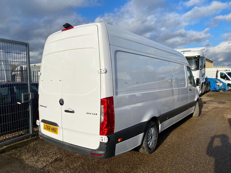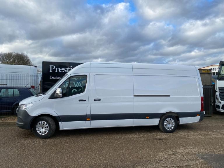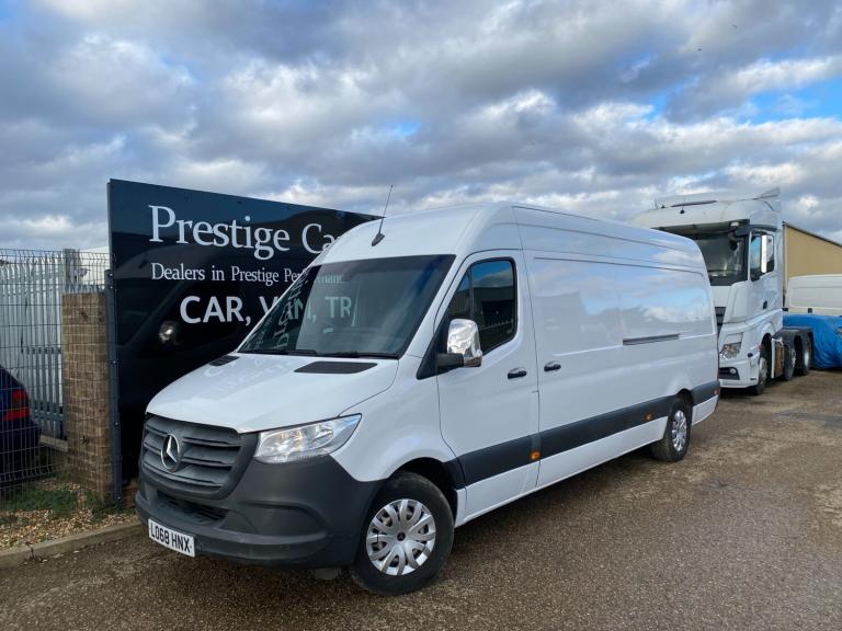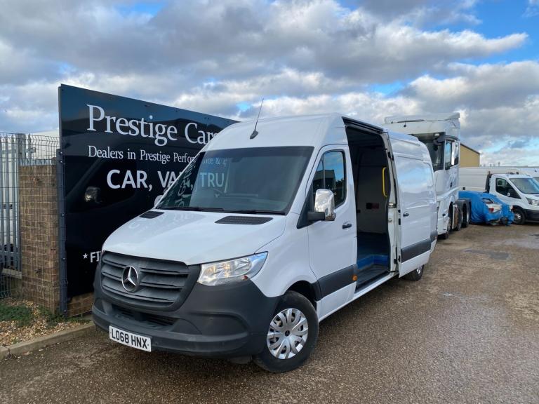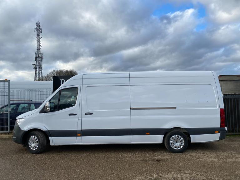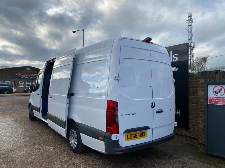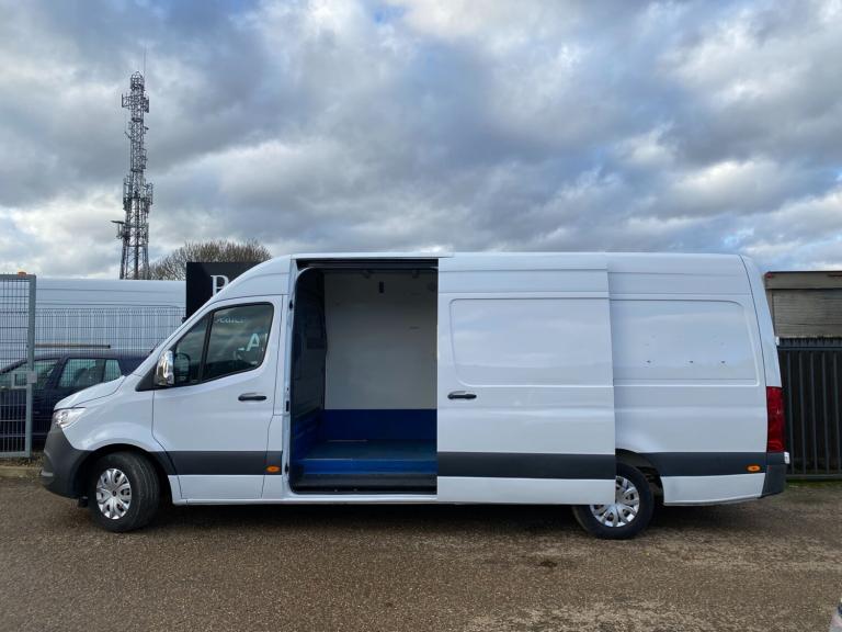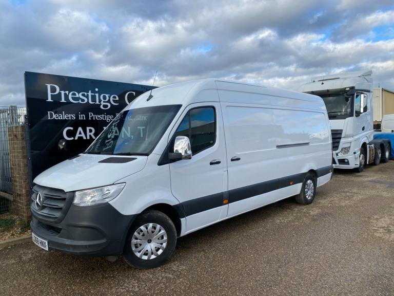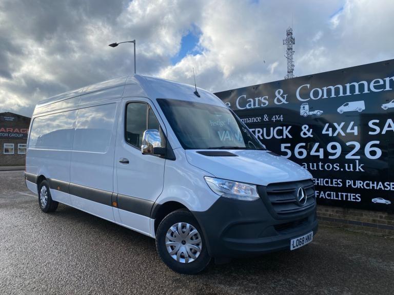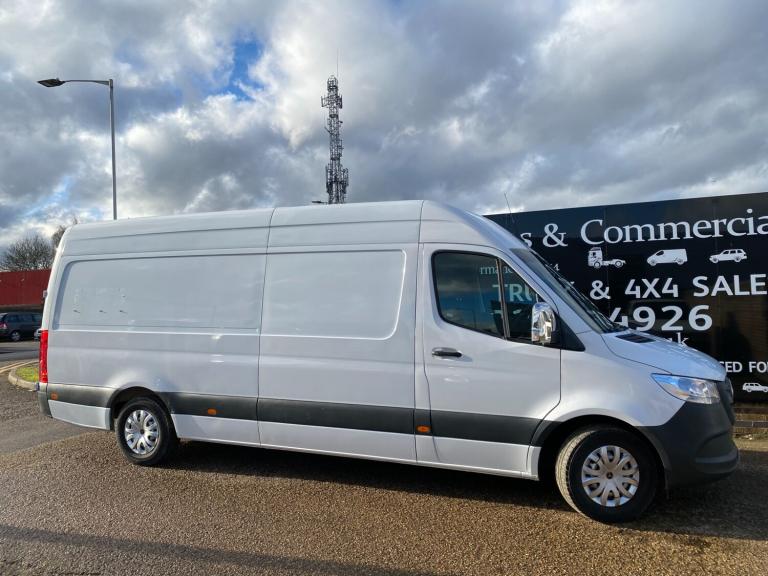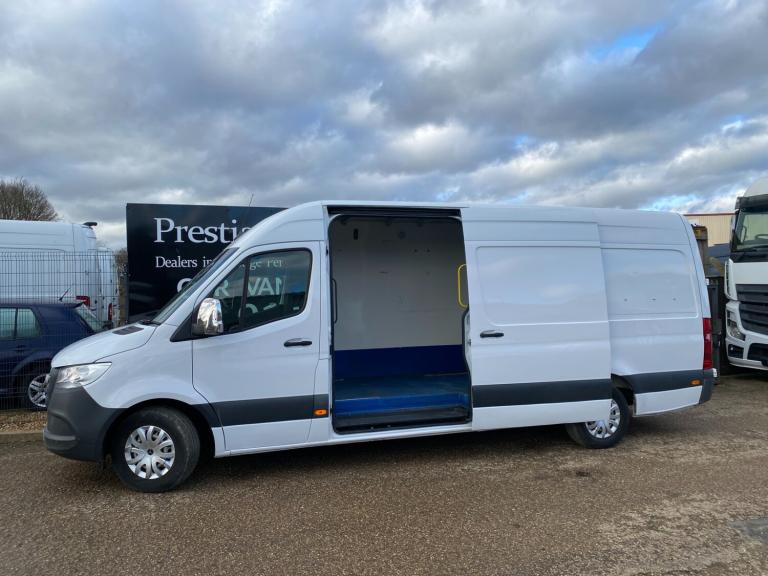 2019 68reg MERCEDES SPRINTER LWB LONG WHEEL BASE HI ROOF PANEL VAN COVERED 140116 MILES. 2.1 CDI 143 BHP TURBO DIESEL WITH 6 SPEED GEARBOX REAR WHEEL DRIVE. 1 LAUNDRY COMPANY OWNER FROM NEW WITH FULL MERCEDES MAIN VAN DEALER SERVICE HISTORY. ONLY BEEN USED TO TRANSPORT COMMERCIAL LINENS SO NOT HAD HARD LIFE. PLASTIC LINED AND INSULATED REAR LOAD AREA WITH FULLY SEALED FLOOR. VERY WELL LOOKED AFTER HENCE DRIVES SUPERB. 6 MONTHS NATIONWIDE PARTS AND LABOUR WARRANTY ALL INCLUDED IN THE PRICE. CURRENT MOT VALID TILL 01/02/2026, FULL 12 MONTHS MOT UPON SALE ALONG WITH FULL SERVICE USING GENUINE MERCEDES FILTERS AND OIL. FACTORY FITTED FULL COLOUR REAR VIEW CAMERA. CRUISE CONTROL. 2 KEYS. ACTIVE BRAKE ASSIST. DAB DIGITAL RADIO. ANTI THEFT DOUBLE LOCKING. BLUETOOTH TELEPHONE+AUDIO INTEGRATION. USB AUX IN MUSIC INTERFACE. DAYTIME RUNNING LIGHTS. ADAPTIVE BRAKE LIGHTS. STANDARD ROAD TAX BAND 12 MONTHS PRICED 345 POUNDS. 1089kg PAYLOAD CAPACITY. 2000 KG TRAILER PULL CAPACITY. 5500 KG TRAIN WEIGHT. SUPERB ECONOMY, BEST IN CLASS. HILL START ASSIST. CROSSWIND ASSIST. SHIFT POINT INDICATOR. OVERHEAD STORAGE SHELVING TO CAB. UNDERSEAT STORAGE. 3 SEATER CAB. CUP HOLDERS. SIDE MARKER LIGHTS. 65MPH SPEED LIMITER (CAN BE REMOVED BY US IF REQUIRED) FULL SIZE SPARE WHEEL. Bluetooth connection, Cruise control, PAS, Service indicator, Steering wheel mounted controls, Trip computer, Auxiliary input socket, Mobile phone App interface, OEM sound system, USB/iPod interface, Front electric windows, Front head restraints, Solid Paint, ABS, Drivers airbag, ESP, Traction control, Alarm, Immobiliser, Remote central locking, Cloth seat trim. GREAT VALUE FOR MONEY LATE MODEL SPRINTER. DRIVES LOVELY. CHOICE OF HAND PICKED QUALITY USED VANS IN STOCK NOW. CHOICE OF MERCEDES SPRINTERS ALWAYS IN STOCK.