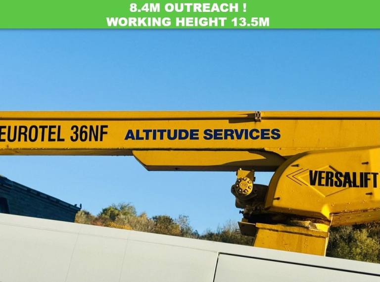 Here we have a 2019 1 owner from new Renault Master Cherry picker, Maintained on maintenance contract all its life with last date hydraulic and lift checks for may 2025 and not due service on van for 20k. Eurotel 36 NF range by Versalift, with both superior design and impressive performance. Boasting a maximum working height of 13.5 metres, this vehicle-mounted lift has been designed for functionality and reliability. Its defining feature is the powerful electrohydraulic system, capable of smoothly lifting heavy loads to considerable heights. Furthermore, it has an outreach capacity of 8.4m (up to 120kg) and can securely carry a load of up to 230 kilograms, ensuring stability and operational comfort for workers at elevated levels.2 Man tub. NO VAT.ONE OWNER FROM NEW !, MAINTAINED ON MAINTENANCE CONTRACT, 8.4M OUTREACH ! WORKING HEIGHT 13.5M , LOAD CAPACITY AT HEIGT 120KG, CERTS AND CHECKS IN DATE TIL 2025,