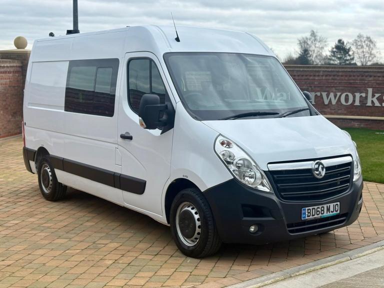 Vauxhall Movano 35 ***6 Seater*** 2.3 Cdti, L2H2 Mwb, Hi Roof Welfare Van, 2.3 Cdti diesel (130Bhp / Euro 6), 6 speed, Jan 2019 on a 68-reg, in white.