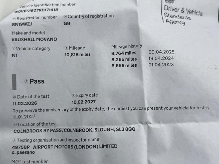Posting for 4+ years2019 VAUXHALL MOVANO 2.3L DIESEL WHITE DROPSIDE WITH TAIL LIFT - 10K MILES