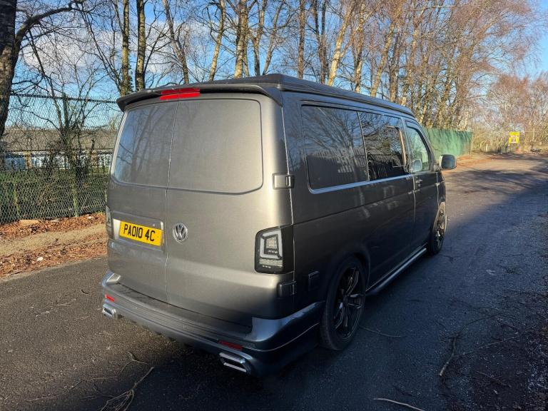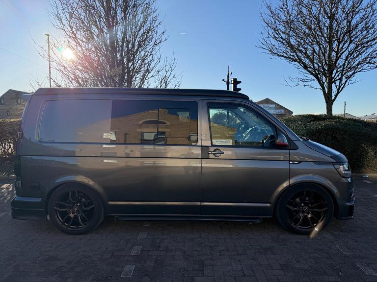 2019 Volkswagen Transporter 2.0 TSI Trendline With incredibly low mileage of just 39,000 miles, this van is practically brand new. It comes with two keys and has been freshly serviced for peace of mind. Equipped with a smooth 6 speed transmission, leather interior, air conditioning, cruise control, heated mirrors, parking sensors, upgraded rear LED lights and a brand new Pioneer DAB stereo featuring Apple CarPlay and Android Auto, this van offers modern convenience at its best. The interior has been newly transformed into a cozy camper setup, complete with a microwave, fridge, pull out bed, captain passenger seats, ample storage, gas hob and sink and a brand new Pop Top with an extended bed, mattress, and airbed. Plus, you ll get a large driveaway awning, perfect for those outdoor adventures This Transporter also boasts some stylish cosmetic upgrades, including a DTM rear bumper, sporty front bumpers, a bonnet cover, and a sleek gloss black grille. It s lowered on coilovers and rides on eye catching bronze alloy wheels. Under the hood, you ll find one of the most reliable engines out there, free from problematic emissions systems like DPF and AdBlue. It s also primed for performance, capable of reaching 300 bhp easily, as it shares its engine with the Golf GTI. We offer part exchange, finance, and warranty options to suit your needs. Don t miss out on this amazing opportunity