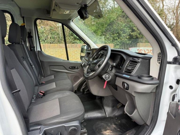 , 16in Steel Wheels, Airbags - Driver, Alternator - Standard Duty 165Amp, Anti-Lock Braking System - ABS with Electronic Brake Force Distribution - EBD, Assist Handle - Located on B-pillar, Auxiliary Connection Point - 1x12V - 60A Connection Located Under Driver Seat Pedestal, Battery - Cold Start -20 Degree C, Battery - Single Improved Flood - IF, Bodyside Mouldings - Wide - Self Colour, Bottle Holder - Twin 2 litre Bottle Capacity - Facia-Mounted, Bulkhead - Full Steel, Courtesy Lights - Header-Mounted Front with Theatre Dimming, Curve Control, Daytime Running Lamps, Door Handles - Self Coloured, Door Mirrors - Blind Spot Eliminator and Integrated Side Indicator, Door Mirrors - Manual, Doors - Unglazed Rear, Doors - Unglazed Rear Doors - Hinged for 180 Degree Opening - Positive Stop At 90 Degree, Dual-Circuit Front and Rear Discs with Self-Adjusting Servo-Assistance and ABS, Easy Clean Floor - Cab, EBA - Emergency Brake Assist, Electric Windows - Front, Emergency Brake Warning, ESC - Electronic Stability Control, Fold Out Front Passenger Seat Table, Ford Easy-Fuel Capless Refuelling System, Ford Eco Mode - Driver Information System, Ford SYNC with 4.2in TFT Screen, Front - Independent MacPherson Struts - Coil Springs - Stabiliser Bar and Gas-Pressurised Shock Absorbers - Rear - Leaf Springs and Gas-Pressurised Shock Absorbers, Front Bumper - Self Colour, Front Grille - Sterling Grey, Gearshift Indicator Light, Glovebox - With Lid and A4 File Storage Capability, Headlights - Halogen Projector with Black Backgroud, Headlights Courtesy Delay - 30 Seconds Duration, Headlining - Cab - Moulded, Heated Front Windscreen, Heater - Positive Thermal Coefficient - PTC, Heavy Duty Alternator, Hill Start Assist, ICE Pack 17, Immobiliser - Safeguard Passive Anti-Theft System - PATS - Insurance-Approved Category 2 Immobiliser, LAC - Load Adaptive Control, Less Easy Clean Floor, Less Steel Spare Wheel, Liftgate - Cargo Door Handle - Self Colour, Load Compartment - DIN 75410 Compliant Tie-down Loops, Loadspace Compartment Light, Locks - Audio Mislock Feedback - Audible Signal if a Door is Ajar When Locking Activated, Locks - Auto Locking on Drive-Away - Doors Automatically Lock at 8 kmh or 5 mph, Locks - Auto Relocking - Doors Relock after 45 Seconds if no Door is Opened, Locks - Configurable Unlocking, Locks - Key Operated Bonnet Release, Locks - Power Door Deadlocks - Shielded with Strengthened Mountings, Mudflaps - Rear, Passenger Side Sliding Load Door - Solid, Power Assisted Steering, Power Point Socket - 2x 12V, Radio with Remote Stalks, Rear Bumper - Self Colour with Integrated Step, Remote Central Door Locking with Deadlocks, Remote Central Locking with One Key Fob, RSC - Roll Stability Control, Seatbelts - 3 Point Diagonal Inertia Reel - All Seats, Seats - Drivers 4-Way Adjustment with Armrest, Seats - Dual Passenger, Selectable Drive Mode, Side Wind Mitigation, Steering Column - Rake and Reach Adjustment, Steering Wheel - 4 Spoke Polyurethane, Storage - Drivers Side - Storage Compartment on Facia Top with Lift Up Lid, Storage - Front Door Map Pockets, Storage - Underseat Stowage Compartment Under Dual Passenger Seat, Trip Computer, Tyre Inflator Kit, Vehicle Identification Number - VIN - Visible, Vehicle Maintenance Monitor, Water in Fuel Filter with Sensor, Wheel Covers - Half Caps, Wipers - Front Variable-Intermittent with Electric Wash