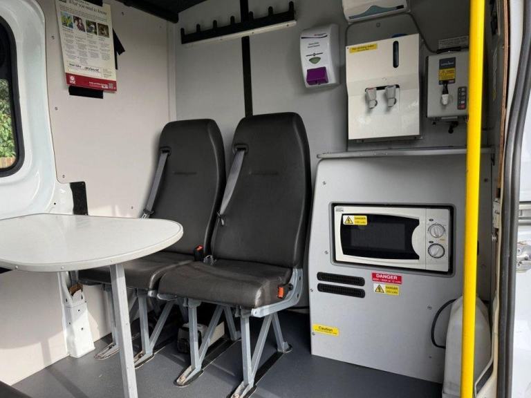 FINISHED IN FROZEN WHITE, PROFESSIONALLY CONVERTED AS A WELFARE MESS UNIT, FITTED WITH 4 REAR SEATS, TABLE, HOT AND COLD WATER, SINK, MICROWAVE, INVERTER WITH POWER SOCKETS, ROOF LIGHTS, REAR CASSETTE TOILET, REVERSE CAMERAS, 7 SEATER, SIDE LOADING DOOR, EURO 6, 2 OWNER FROM NEW, POWER STEERING, DAB RADIO WITH USB PHONE CONNECTION, ELECTRIC WINDOWS, REMOTE CENTRAL LOCKING, NOVEMBER 2026 MOT++ THIS VAN IS ON THE V CAR REGISTER AS A CAT S++ 3 MONTHS WARRANTY INCLUDED+ VERY CLEAN CONDITION, GENUINE LOW MILEAGE ONLY 54,000, EURO 6, THERE IS NO VAT TO PAY SO 20% SAVINGS+ NATIONWIDE DELIVERY FREE WITH IN 50 MILES+ PLEASE CALL, TEXT OR WHATS APP: [Phone number removed]OR [Phone number removed]FOR FURTHER INFORMATION OR TO ARRANGE A VIEWING+ NO VAT TO PAY+, + 3 MONTHS OR 6,000 MILES WARRANTY SOLUTIONS MECHANICAL WARRANTY INCLUDED IN AT THE SCREEN PRICE ***FINANCE AND BANK LOANS AVAILABLE FROM 11% APR*** NATIONWIDE DELIVERY FREE WITH IN 50 MILES***PART EXCHANGE WELCOME*** WALK AROUND VIDEOS AND PHOTOS AVAILABLE UPON REQUEST PLEASE CALL, TEXT OR WHATS APP: [Phone number removed]OR [Phone number removed]FOR FURTHER INFORMATION OR TO ARRANGE A VIEWING