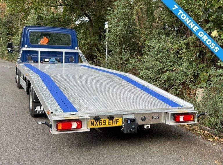 FITTED WITH A BRAND NEW UNUSED 20FT AMS BEAVERTAIL CAR TRANSPORTER RECOVERY BODY, SIDE RAILS, SIDE STORAGE-STRAP BOX, WINCH WITH WIRED AND WIRELESS REMOTES, UP AND OVER WHEEL STARP SYSTEM, AJUST HIGHT TOW BAR, REVERSE CAMERA, FLYER, 3 SEATER CAB, FINISHED IN DARK ROYAL BLUE, POWER STEERING, ELECTRIC WINDOWS, DRIVERS AIRBAG, REMOTE CENTRAL LOCKING, DAB RADIO WITH BLUETOOTH, EURO 6, SO ULEZ COMPLIANT (OK), AUTOMATIC GEARBOX, WE HAVE CHOICE OF 2 AVAILABLE, THIS TRUCK WILL LEGALLY CARRY AROUND 4000KG SO A XLWB LARGE VAN OR LARGE RANGEROVER, 7000KG GROSS WEIGHT, 1 OWNER+ WALK AROUND VIDEO AVAILABLE+ JUST BEEN BUILT THIS WEK MORE PHOTOS TO BE UPLOADED VERY SOON!, FINANCE FACILITYS AVAILABLE+ NATIONWIDE DELIVERY FREE WITH IN 50 MILES+ 3 MONTHS MOTORGUARD WARRANTY+ PLEASE CALL, TEXT OR WHATS APP: [Phone number removed]OR [Phone number removed]FOR FURTHER INFORMATION OR TO ARRANGE A VIEWING, + 3 MONTHS MOTORGUARD MECHANICAL WARRANTY INCLUDED IN AT THE SCREEN PRICE ***FINANCE AND BANK LOANS AVAILABLE*** NATIONWIDE DELIVERY***PART EXCHANGE WELCOME*** WALK AROUND VIDEOS ANDS PHOTOS AVAILABLE UPON REQUEST PLEASE CALL, TEXT OR WHATS APP: [Phone number removed]