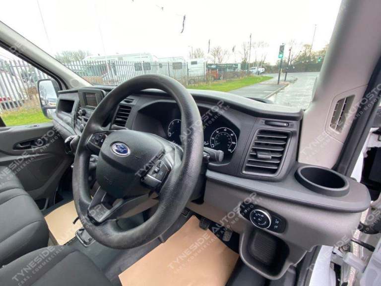 , 16in Steel Wheels, Airbags - Driver, Anti-Lock Braking System - ABS with Electronic Brake Force Distribution - EBD, Assist Handle - Located on B-pillar, Battery - Cold Start -20 Degree C, Bluetooth, Bodyside Mouldings - Wide - Self Colour, Bottle Holder - Twin 2 litre Bottle Capacity - Facia-Mounted, Bulkhead - Full Steel, Cargo Door Handle - Self Colour, Courtesy Lights - Header-Mounted Front with Theatre Dimming, Curve Control, Door Handles - Self Coloured, Door Mirrors - Blind Spot Eliminator and Integrated Side Indicator, Door Mirrors - Manual, Doors - Unglazed Rear Doors - Hinged for 180 Degree Opening - Positive Stop At 90 Degree, Dual-Circuit Front and Rear Discs with Self-Adjusting Servo-Assistance and ABS, EBA - Emergency Brake Assist, Electric Windows - Front, Emergency Brake Warning, EPAS - Electric Power Assisted Steering, ESC - Electronic Stability Control, Floor Covering - Cab Easy-Clean Rubber, Fold Out Front Passenger Seat Table, Ford Easy-Fuel Capless Refuelling System, Ford SYNC with 4.2in TFT Screen, Front - Independent MacPherson Struts - Coil Springs - Stabiliser Bar and Gas-Pressurised Shock Absorbers - Rear - Leaf Springs and Gas-Pressurised Shock Absorbers, Front Bumper - Self Colour, Front Grille - Self Colour, Front Passengers Seat - Dual Fixed with Split Lift Up Cushion for Stowage and Fold Out Table, Gearshift Indicator Light, Glovebox - With Lid and A4 File Storage Capability, Headlights - Halogen Projector Containing Daytime Running LIghts, Headlights - Levelling Control, Headlights Courtesy Delay - 30 Seconds Duration, Headlining - Cab - Moulded, Heater - Positive Thermal Coefficient - PTC, Heavy Duty Alternator, Hill Start Assist, ICE Pack 17, Immobiliser - Safeguard Passive Anti-Theft System - PATS - Insurance-Approved Category 2 Immobiliser, LAC - Load Adaptive Control, Less Easy Clean Floor, Less Steel Spare Wheel, Load Compartment - DIN 75410 Compliant Tie-down Loops, Loadspace Compartment Light, Locks - Audio Mislock Feedback - Audible Signal if a Door is Ajar When Locking Activated, Locks - Auto Locking on Drive-Away - Doors Automatically Lock at 8 kmh or 5 mph, Locks - Auto Relocking - Doors Relock after 45 Seconds if no Door is Opened, Locks - Configurable Unlocking - 2-Stage Unlocking, Locks - Key Operated Bonnet Release, Locks - Power Door Deadlocks - Shielded with Strengthened Mountings, Mudflaps - Rear, MyKey, Overhead Storage Console, Passenger Side Sliding Load Door - Solid, Power Point - 2 x 12V Located on Instrument Panel and in Stowage Bin, Radio with Remote Stalks, Rear Bumper - Self Colour with Integrated Step, Remote Central Door Locking with Deadlocks, Remote Central Locking with One Key Fob, RSC - Roll Stability Control, Seatbelts - 3 Point Diagonal Inertia Reel - All Seats, Seats - Drivers 4-Way Adjustment with Armrest, Selectable Drive Mode, Side Wind Mitigation, Steering Column - Rake and Reach Adjustment, Steering Wheel - 4 Spoke Polyurethane, Storage - Front Door Map Pockets, Storage - Underseat Stowage Compartment Under Dual Passenger Seat, Tinted Glass, Trip Computer, Tyre Inflator Kit, Vehicle Identification Number - VIN - Visible, Vehicle Maintenance Monitor, Water in Fuel Filter with Sensor, Wheel Covers - Half Caps, Wipers - Front Variable-Intermittent with Electric Wash