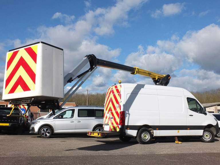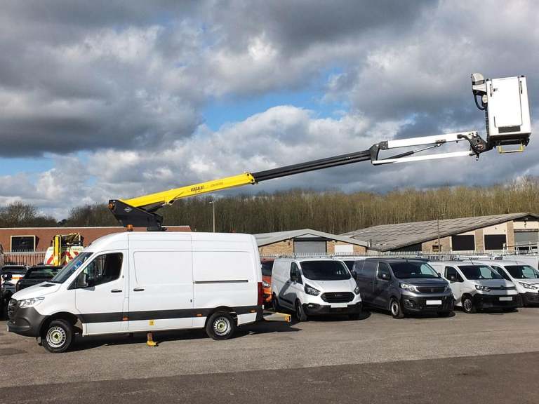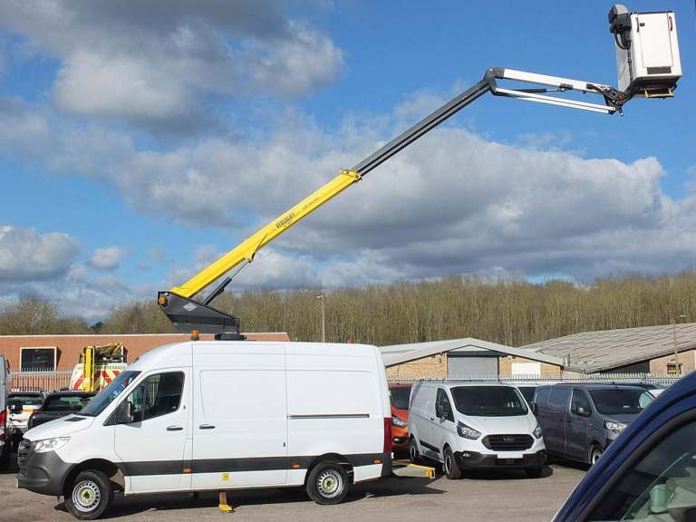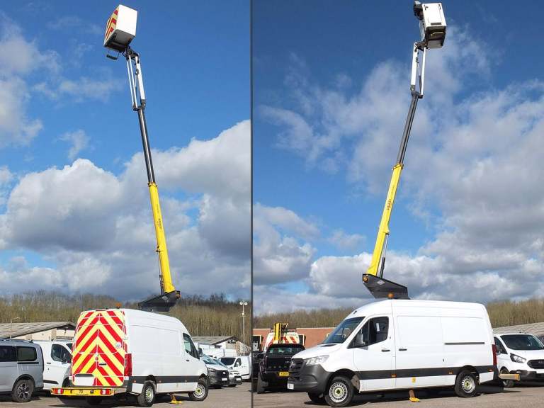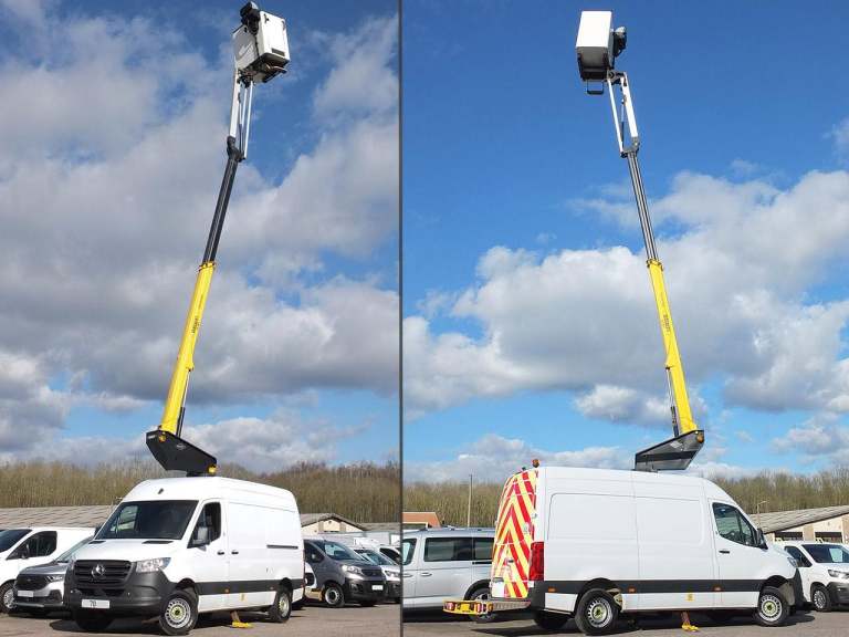 3 Seats - Dual Passenger Seat with Under-Seat Storage, Mercedes PRO Connect Telematics System (Subscription Required), Fully Lined-Out, Heavy-Duty Wooden Floor, Full-Height Steel Bulkhead, Unglazed Twin Rear Doors - Open 270º with Magnetic Retention, N/S Sliding Side-Loading Door, L2 H2 Medium Wheelbase Med Roof Height 3.5 tonne / 3500 kg GVW Panel Van Based Telescopic Platform - Perfect for Street Lighting / Highway Maintenance - CAN BE DRIVEN ON A STANDARD CLASS B CAR LICENCE