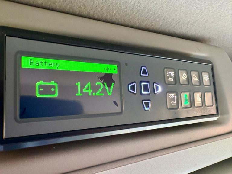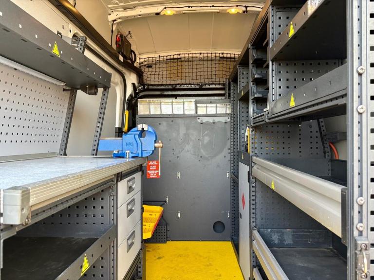 Then in the rear of this van it has had a small fortune spent on it converting it to a mobile fitters van with Modul System racking and draw units down both sides, work bench, vice, heavy duty 240v power inverter, 110v power, split charge system, extra LED internal lights, LED work lights, roof mounted fresh air roof vent, LED amber flashing lights, night heater, hot water hand wash, water boiler etc.
