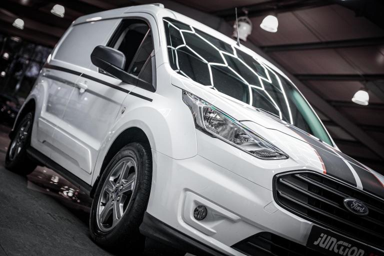 *CLICK - BUY - COLLECT* FINANCE AVAILABLE! HPI CLEAR! Junction 17 Cars now have to offer a stunning Ford Transit Connect 1.5 200 EcoBlue Sport L1 Manual Panel Van.. One former keeper with 6x service records present, all from one independent garage.. Finished in White Gloss with Black/Orange stripes and sticker pack.. Black half leather upholstery.. Desirable specification.. Heated front seats.. Heated windscreen. Revere parking sensors.. Cruise control/speed limiter.. DAB radio.. Full bulkhead with ply-lined rear space, and so much more.*ANY THIRD PARTY VEHICLE INSPECTIONS ARE WELCOME* *WE WILL BEAT ANY CAR VALUATION SITE FOR YOUR PART EXCHANGE* Junction 17 Cars (Runner Up at the Motor Trader Independent Dealer Awards 2019 nominated for Car Supermarket of the Year Award) is a unique family run business with over 7 millions worth of stock currently split over our purpose-built showroom in Yaxley, Peterborough and our new showrooms in Grantham and Rugby. Our vehicles can also be reserved with a 99 refundable holding deposit to ensure that they are professionally prepared/valeted for your viewing pleasure. Competitive HP and PCP packages are available with decision/approval available within 15 minutes. We also offer comprehensive warranties over a variety of different terms as well as Williams Ceramic Coating, Flexfuel Engine Carbon Cleaning and more. **NATIONWIDE DELIVERY AVAILABLE** Payment : maximum 500 card payment balance by bank transfer