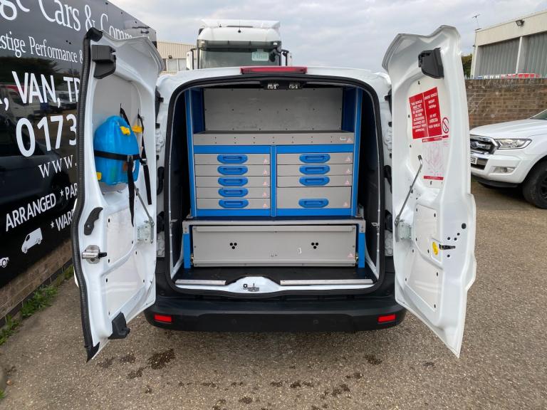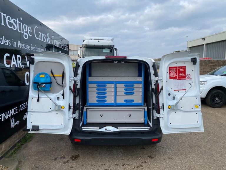 2020 20REG FORD TRANSIT CONNECT 240 LWB L2H1 LONG WHEEL BASE PANEL COVERED 90652 MILES BY 1 UTILITY COMPANY OWNER FROM WITH FULL SERVICE HISTORY. SUPERBLY MAINTAINED AND LOOKED AFTER, WILL BE GIVEN A FULL SERVICE USING GENUINE FORD FILTERS AND OIL. VERY CLEAN INSIDE OUT. DRIVES SUPERB. CURRENT MOT VALID TILL 19/11/2026. 6 MONTHS NATIONWIDE PARTS AND LABOUR WARRANTY. 1.5 TDCI ECOBLUE 100 BHP ENGINE WITH 6 SPEED MANUAL GEARBOX. STANDARD VAN TAX BAND 12 MONTHS PRICED 345 POUNDS. SUPERB ECONOMY 50-60 MPG. 2 SEATER CAB. PROFESISONAL REAR RACKING SHELVING STORAGE SYSTEM WITH DRAWERS (CAN ALL BE REMOVED BY US IF REQUIRED). REAR LOAD AREA LED LIGHTS. AIR CON. HEATED FRONT SCREEN. FRONT AND REAR PARKING SENSORS. FULL COLOUR REAR VIEW CAMERA. FRONT FOGS. DAB DIGITAL RADIO. VOICE CONTROL COMMAND SYSTEM. AIR CON. BLUETOOTH TELEPHONE AND AUDIO INTEGRATION. DAB DIGITAL RADIO. USB AUX IN MUSIC MEDIA CONNECT. OVERHEAD STORAGE TO CAB. TWIN SIDE LOADING DOORS. TWIN REAR DOORS WITH 180 DEGREE OPENING. FULL SIZE BULKHEAD. FRONT FOGS. ELEC HEATED MIRRORS. SUPERB EXAMPLE. GREAT VALUE FOR MONEY LATE MODEL VAN IN HIGH SPEC WITH GOOD EXTRAS. CHOICE OF 3 SISTER VEHICLES IN STOCK NOW ALL WITH SAME HI SPEC AND STUNNING CONDITION. 2405kg gross vehicle weight. 1620kg unladen weight. 785kg payload capacity. Auto start/stop system, ABS + EBD, Trip computer, PAS, Ford Eco mode, Easy fuel capless refuelling system, Steering wheel mounted audio controls,, Electric windows - one touch lowering driver side,, Active grille shutter, Reach and rake adjustable steering column, Interior roof rack / Interior Overhead stowage, Cargo area tie down loops, , 4 way adjustable passenger seat, Drivers airbag, Driver seatbelt reminder, Remote central double locking, Immobiliser, Hill start assist, Heavy duty battery, ESP + EBA, DRIVES LOVELY. VERY CLEAN WELL LOOKED AFTER VAN. SUPERB VALUE FOR MONEY. CHOICE OF QUALITY USED HAND PICKED COMMERCIALS IN STOCK NOW. CHOICE OF PANEL VANS, TIPPERS, DROPSIDES, LUTONS, PICK UP'S, CREW CABS, SINGLE CABS ALL IN STOCK NOW.