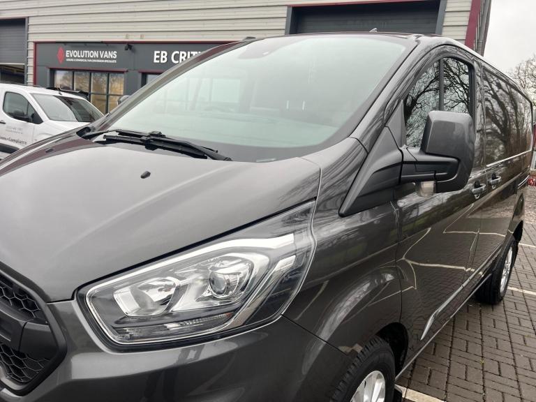 This 2020 Ford Transit Custom Limited Edition features a warranted mileage, a clear HPI vehicle history, 12 months MOT, and a part service record. The Limited spec is the top choice; you benefit from a multifunction steering wheel, cruise control, heated seats, a touchscreen media system with Android and Apple CarPlay, air conditioning, stop-start, driving modes, gloss-black dashboard trims, upgraded seat upholstery, heated mirrors, and a heated windscreen. This Euro 6-compliant diesel van is practical, equipped with a 2.0-litre diesel 130ps engine and a short wheelbase for agile handling. It comes with a 6-month warranty from market-leading warranty provider Momentum Warranties, which you can upgrade to 12 months. The warranty also includes free breakdown cover, and you can take the vehicle to any VAT-registered garage in the UK. Competitive finance options are available, and we welcome part-exchanges of great condition cars and vans at trade value. Nationwide delivery options are available, please contact us for a quote. T&Cs apply. Evolution Vans specialise in leisure and commercial van conversions, from campervans to crew cabs. We can supply and fit windows, alloys, carpet lining, pop-top roofs, rear seating, van racking, roof bars, roof racks, diesel heaters, kitchens, rock-and-roll beds, and much more. Features Include: , air conditioning, bluetooth connection, climate control, door mirrors electrically foldable, rain-sensing wipers, usb/ipod interface, barn doors, bulkhead, drivers arm rest, dual passenger seat, standard roof, cruise control, esp, front parking sensor, multi-function steering wheel, parking sensors, power steering, rear parking sensor, steering wheel rake adjustment, steering wheel reach adjustment, traction control, trip computer, abs, air bag, passenger airbag, service indicator, alarm, central locking, immobiliser, locking wheel nuts, electric front windows, electric mirrors, heated door mirrors, windscreen heating, front armrest, heated seats, height adjustable drivers seat, alloy wheels, auto lighting, body coloured bumpers, colour coded body, front fog lights, led 3rd brake light, led daytime running lights