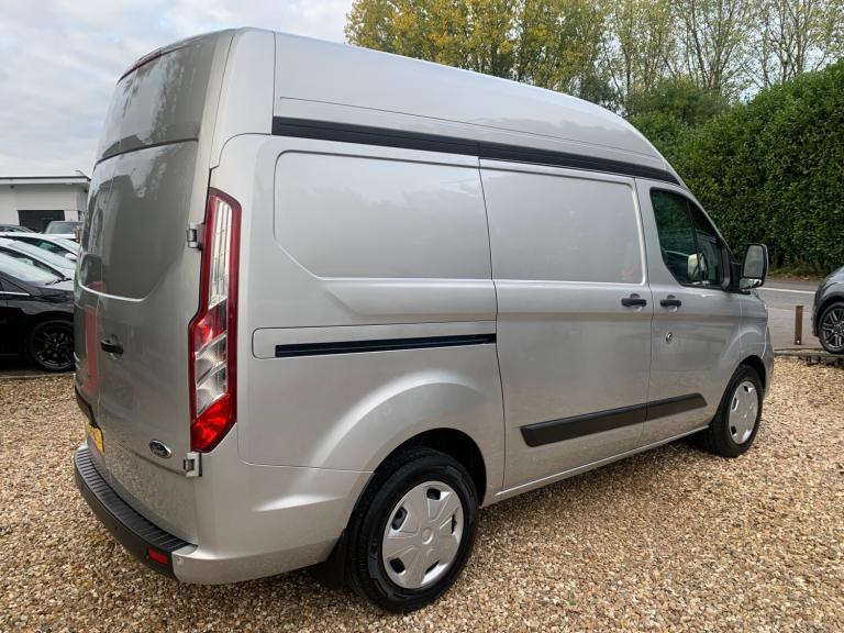 VAT IS APPLICABLE TO THIS VEHICLE. Very clean, well presented and highly equipped Transit Custom. This is a moondust silver metallic standard L1panel van with a H2 high roof. One of a fleet that we have bought from an international engineering company that we have been dealing with for 30 years. Always well equipped with £2,500 worth of optional extras. This van is fitted with the ULEZ and EURO 6D Compliant 2.0 TDCI 130 BHP DIESEL ENGINE with a 6 speed manual gearbox. This van has a 5 stamp service history and the WETBELT was replaced by a Ford main agent at 103,994 miles 22nd October 2024. Features full steel bulkhead with a long load through hatch below the passengers seat, TWIN SLIDING SIDE DOORS, un-glazed rear barn doors, clean factory fitted white interior lining and a ply floor and a 3 seater grey fabric trimmed cabin. Supplied complete with 2 keys, owners hand-books, service history with 5 service stamps, spare wheel, tool-kit and jack. Equipped like a car with power assisted steering, ABS brakes with emergency brake assist, traction control system, ECO stop start system, cruise control with speed limiter, SAT-NAV, DAB radio stereo with large colour touch screen, Apple CarPlay, Android Auto, USB port, Bluetooth connectivity, multi-function trip computer, steering wheel mounted audio-cruise and phone controls, reversing camera, air-conditioning, Quick Clear heated windscreen, heated front seats, front and rear parking sensors, front fog-lights, automatic head-lights, rain sensing wipers, LED daytime running lights, remote central locking, electric windows, electric power fold door mirrors, drivers air-bag, passengers air-bags, side air-bags, alarm and immobiliser. Recent service and a current mot until August 2026 but will be sold with a fresh new mot. 3 MONTHS PARTS AND LABOUR WARRANTY INCLUDED. PART-EXCHANGE and FINANCE FACILITIES AVAILABLE.