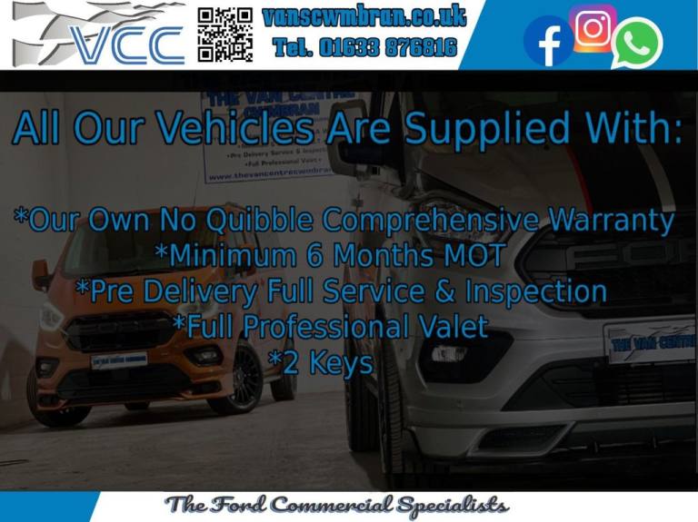 Just arrived - Awaiting Preparation! Specification Includes: NEW WET BELT! Factory Bulkhead, Air Conditioning, Heated Front Seats Cruise Control, Front & Rear Parking Sensors, Automatic Headlights, LED Daytime Running Lights, DAB Stereo, Apple Carplay and Android Auto, Heated Front Screen, Bluetooth Connectivity, Electric & Folding Heated Mirrors, Electric Windows, Front Fog Lights, Remote Central Locking, Side Loading Door & Rear Barn Doors - We are Independent Ford Commercial Specialists offering a range of Ford commercials for sale. All our vehicles are prepared in our own on-site workshops and are supplied with: * Our Own Comprehensive No Quibble Warranty * Full Service & Multi-Point Pre Delivery Inspection * Minimum 6 Months MOT * Full Professional Valet *Ford Trained Technicians * Competitive Finance Rates Available - Try Us First * * Part Exchange - Vans / Cars / 4x4 * * Over 50 Ford Commercials Always In Stock *.16in Alloy Wheels, 2nd Remote Key Fob, 8 Way Adjustable Drivers Seat with Armrest, ABS - Anti-lock Braking System, Airbag - Front Passenger, Automatic Headlights - Follow Me Home, Automatic Headlights with Rain Sensing Wipers, Body Colour Front Bumper and Mirror Housing, Body Colour Rear Bumper, Bodyside Mouldings - Body Colour, Bulkhead - Full Steel with Load Through Hatch, Chrome Grille with 3 Bars, Colour Keyed Exterior Pack, Complete Rear Trim Board - Half Height, Cruise Control, Door Handles - Body Colour, Drivers Airbag, EBA - Emergency Brake Assist, ESC - Electronic Stability Programme, Easy Clean Load Floor, Electrically-Operated Front Windows with One Touch Drivers, Ford Eco Mode - Driver Information System, Front Manual Air Conditioning, Gear Knob - Leather, Halogen Headlights with Courtesy Delay, Halogen Projector Headlights with LED Daytime Running Lights and Adaptive Cornering Front Fog Lights, Heavy Duty Alternator, Hill Start Assist, ICE Pack 21 - SYNC3 Audio, Interior Grab Handles - Front, LED Load Compartment Light, Light Tinted Glass - ilo Privacy Glass, Load Compartment - Protection Kit, Load Compartment - Tie Down Loops x8, Lockable Glovebox, Mini Overhead Console, Moulded Load Floor Liner, Parking Aid - Front and Rear with Front Fog Lamps, Passenger Side Sliding Load Door with Track Cover, Power Assisted Steering, Power Door Deadlocks - Shielded, Power Foldable and Heated Mirrors, Quickclear Heated Windscreen, RSC - Roll Stability Control, Rear Doors - 180 Opening - Unglazed - Positive Stop at 90, Remote Central Door Locking with Deadlocks, Seat Pack 25, Seats - Dual Passenger with Underseat Stowage, Selectable Drive Mode, Shift Indicator Light, Side Wind Mitigation, Spare Wheel - Conventional, Steering Column - Rake and Reach Adjustment, Steering Wheel - Leather-Trimmed, Steering Wheel Controls, Sunglasses Holder in Roof Stowage, Sunvisors - Illumination of Driver and Passenger, Thatcham Category 1 Alarm, Traction Control - TC, Trailer Sway Control, Trip Computer, Two 12V Power Socket, Vehicle Maintenance Monitor, Water in Fuel Filter with Sensor