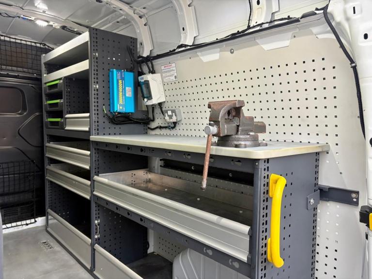 Then in the rear of this van it has had a small fortune spent on it converting it to a mobile fitters van with Bott racking and draw units down both sides, storage boxes, heavy duty fold out vice, heavy duty 240v power inverter, extra LED internal lights, roof mounted fresh air roof vent, LED amber flashing lights, you name it this van has it!!!