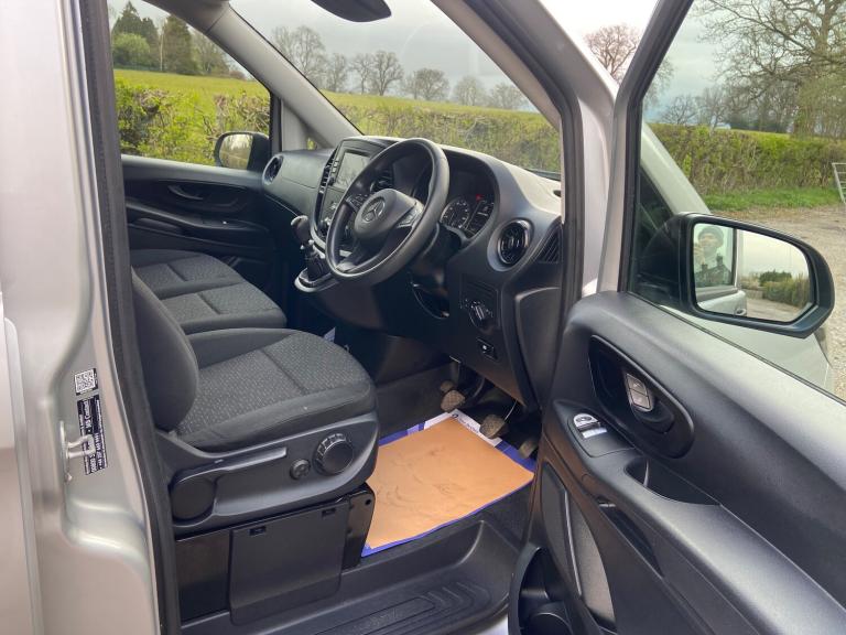 For sale is a 2020 Mercedes-Benz Vito 1.7 114 CDI Progressive Panel Van with just 37000 miles on the clock. This diesel vehicle is ULEZ compliant and comes with MOT valid until 05/10/2026. With 3 seats in a single cab configuration, this panel van is an ideal commercial vehicle, featuring 5 doors and a gross weight of 3050kg. Finished in metallic silver, it includes 16in steel wheels, colour-coded front and rear bumpers, heated and electrically adjustable door mirrors, as well as heat-insulating glass. Electric windows at the front provide added convenience for the driver. With its reliable diesel engine and spacious interior, this Mercedes-Benz Vito is a practical and efficient choice for any business. Features Include: , 16in steel wheels, colour-coded front and rear bumpers, door mirrors - heated and electrically adjustable, electric windows - front, heat insulating glass, spare wheel with jack, summer tyres, abs - anti-lock braking system, active brake assist, airbag - co-driver, airbag - driver, anti-theft protection package, crosswind assist, double locks, remote central locking, attention assist, cruise control, electromechanical steering, reversing camera, tyre pressure monitoring - wireless, accident recovery and breakdown management, audio 30, comfort driver seat, comfort overhead control panel, double co-driver seat, lockable glove compartment, multifunction steering wheel, rain sensor, seating - lumbar support for driver seat, steering wheel - rake and reach adjustment, twin sliding doors, wood load flooring, halogen fog lights, lighting - headlight assistant