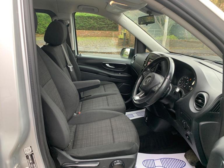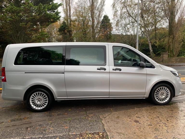 This 2020 Mercedes Benz Vito 119 CDI SELECT Tourer is a remarkable example, having been cherished by just one owner since new. This L3 XLWB model, registered in 2020, boasts a powerful 2.1 litre Euro 6 diesel engine delivering an impressive 190 bhp. The SELECT trim level ensures a comfortable and convenient experience, enhanced by features such as 17 inch light alloy wheels, TEMPMATIC air conditioning for optimal cabin climate, and automatic headlights for improved visibility.The Vito 119 CDI SELECT Tourer offers a compelling blend of performance and efficiency, with a fuel economy of 39 mpg, demonstrating its capability for both long journeys and daily use. These highlights indicate that this vehicle offers a superior driving experience compared to other similar models on the market. Its rear wheel drive configuration and G Tronic automatic transmission provide a smooth and responsive drive, making it a practical and desirable choice.