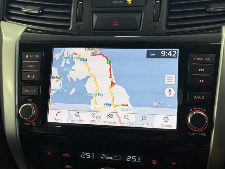 SHUTTER COVER LEATHER ABS SAT NAV REVERSE CAMERA DAB RADIO CRUISE CONTOL AIR CON. For sale is this superb Nissan Navara Tekna Double Cab Pick Up, fitted with the powerful yet efficient 2.3 dCi 190 twin-turbo diesel engine and intelligent 4WD system. With a commanding road presence and excellent practicality, this Navara is the perfect combination of workhorse and family vehicle. 2.3 dCi 190 Twin Turbo Diesel, strong, reliable, and economical. 6-Speed Manual, Full Tekna Specification, Leather Interior with Heated Front Seats. Satellite Navigation & Premium Infotainment System. 360 Around View Camera with Parking Sensors. Double Cab, seats 5 comfortably with generous load space. 18 inch Alloy Wheels, Chrome Styling & Roof Rails. Dual-Zone Climate Control. Cruise Control & Speed Limiter