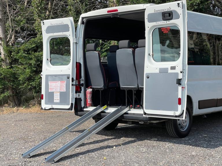 Available now and perfect for a infantrimary school, charity or sports/social club for young persons; this lightweight, ULEZ compliant, 17-seat Peugeot Boxer LWB L3H2 ‘CanDrive’ can be driven on a standard B category car licence subject to certain criteria*. Spec highlights include removable wheelchair ramps, Rear parking sensors, Fixed roof hatch, Quick release removable seats to allow varying configurations, DAB, retractable side-step, slip-resistant floor, USB connection, Electric windows and opening side windows, High visibility grab rails, remote central locking and more. By using innovative, lightweight materials it provides an ideal solution for organisations looking for maximum carrying capacity (max load 3850kg) without having to incur the expense of putting staff through additional licence training* And this 1 owner, 17-seat example has covered just under 6.5k miles, is offered in excellent condition throughout and comes with full independent inspection, new service and MOT. National warranty options with roadside assistance available for up to 2 years. Signwriting available. Nationwide delivery available. Competitive finance available. Call for an instant quote. Over 40 used minibuses in stock. Let us know what you are looking for. **Save up to 10p per litre of fuel with Jurni Fuel cards. Contact us for more information** Viewing Mon-Fri by appointment. For more info, photos and downloadable documentation visit [Website URL removed] *Any statements are correct at the time of advertising. You must meet certain criteria to drive a minibus – please seek independent advice. ULEZ status provided by tfl.gov.uk.