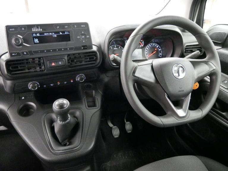 , 12V Electrical Accessory Socket - Passenger Side, 12V Electrical Accessory Socket in Centre Console, 15in Steel Wheels with Centre Caps, 20 Watts Per Channel Output, ABS - Anti-Lock Braking System, Anti-Submarining Ramps in Front Seats, Bluetooth A2DP Audio Streaming, Bluetooth Connectivity, Bulkhead - Full Height Steel, CSC - Corner Stability Control, Central Facia Display, DAB Digital Radio, Deactivation Switch for Front Passengers Airbag, Deformation Zones Front and Rear, Dipping Rear-View Mirror, Drinks Holder - Two Facia Mounted, Driver Information Display, Drivers Airbag, Drivers and Front Passengers Lap Belt Pretensioner System, Drivers and Front Passengers Sunvisors, EBD - Electronic Brakeforce Distribution, ESP - Electronic Stability Programme, Electrically Operated Front Windows with Safety Autoreverse and One-Touch Facility, Electronically Protected Audio Equipment, Emergency Brake Assist, Energy Absorbing Steering Column, Engine Deadlock Immobiliser, Engine Drag Torque Control, Fixed Floor-Mounted Load Restraint Lashing Eyes x6, Floor Mounted Handbrake Lever, Four Adjustable Facia Vents, Front Body Lock Seatbelt Pretensioner System, Front Passengers Underseat Storage - Fixed, Front Seatbelt Force Limiters, Fuel Gauge with Low Fuel Warning Light, Full-Width Overhead Storage Shelf with Ambient Lighting, Height Adjustable Front Inertia-Reel Lap and Diagonal Seatbelts, Hill Start Assist, Illuminated Controls, Illuminated Load Area, Large Open Storage Pocket Behind Infotainment Screen, Multi-Function Trip Computer, Nearside Sliding Side Access Door - Unglazed, Open Storage Compartment Below Glovebox, RDS with Traffic Programme, Reinforced Passenger Safety Cell, Remote Control Central Locking, Rev Counter, Seats - Driver with 4-way Adjustment, Shift Up Indication Light, Side Impact Protection Beams, Side Protection Mouldings, Side Window Demist Vents, Six-Speed Fan, Small Open Storage Compartment Behind Gear Lever, Solar Heat Absorbing Windscreen, Speakers - x4, Speed Sensitive Electrically Assisted Power Steering, Speedometer, Steering Column - Adjustable for Reach and Rake, Stereo Radio - AM-FM, Tinted Windows, Traction Control, Twin Electrically Adjustable - Heated Door Mirrors, Twin Solid Rear Doors - Unglazed, Two Drinks Holders in Centre Console, Two Large and Small Open Door Pockets, Two Speed Windscreen Wipers with Variable Intermittent Wipe, USB Charging - Infotainment Points - Infotainment Unit and Rear of Centre Console, USB Charging Point in Glovebox, USB Connection with iPod Control, VIN - Visible Vehicle Identification Number, Vanity Mirror on Rear of Drivers Sunvisor, Vauxhall Connect, Water Temperature Gauge with Warning Light, Windscreen Demist Vents