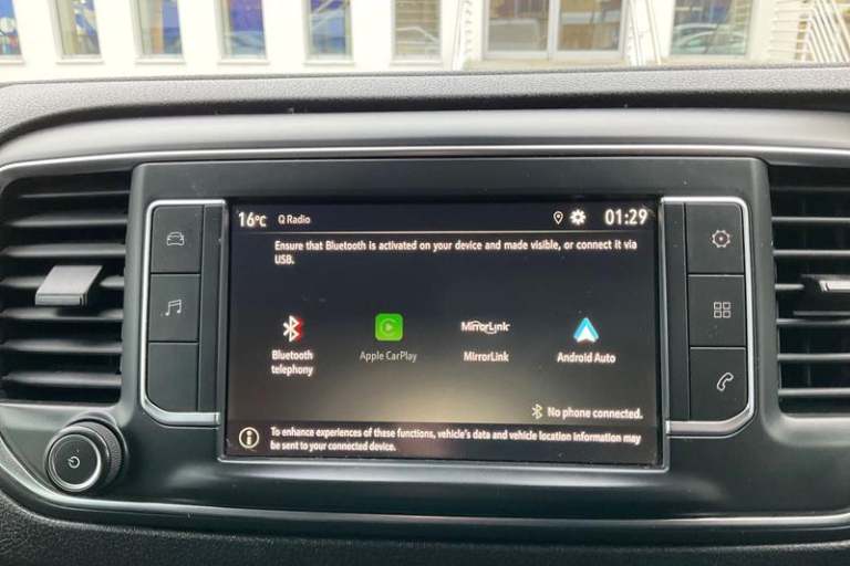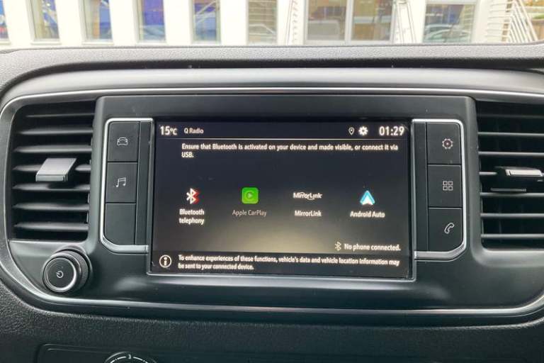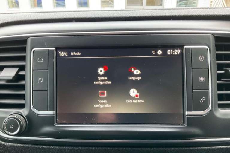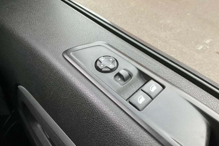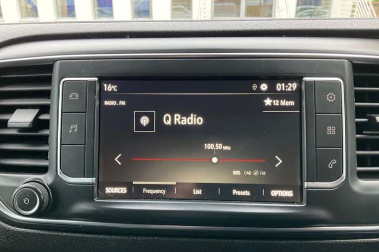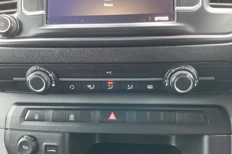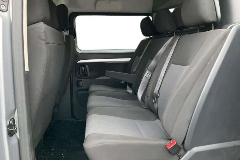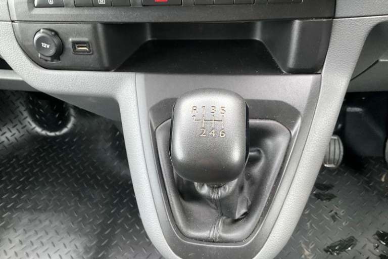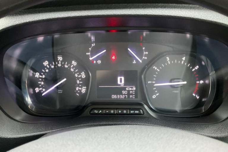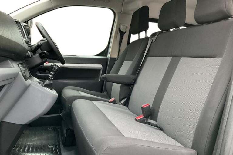 Fixed dual front passenger bench seat and backrest with underseat storage and height adjustable front padded head restraints, PAS, Cab soundproofing, Halogen headlights, Height adjustable outer front seatbelts, Front door pockets, Side protection mouldings, Full height ABS plastic bulkhead with window, Electrically adjustable + heated door mirrors, Hill start assist, Electronic brake force distribution, Emergency brake assist, Curitiba cloth upholstery, 3 point seat belts, Four channel Anti lock braking system, Instrumentation - Speedometer, rev counter, fuel gauge with low fuel warning light and coolant temperature warning light, Remote control door locking, Vauxhall connect box, selective door locking, two keys with integral remote and door deadlocks, Driver airbag and front passenger airbag with deactivation switch, Fold flat centre seat backrest, Nearside and offside side access door with fixed windows, Visibility Pack - Vivaro, Driver and front passengers side impact and curtain airbags, Front cornering lights, Electric front windows with one touch up/down facility, Multi function trip computer, trip odometer, vehicle range, average speed, driving time, average and instantaneous fuel economy, 22.5 litres AdBlue tank, Steering column mounted audio controls and flexible roof mounted aerial, Lights on audible warning, reversing light, hazard warning, rear fog light, high level brake light and side repeat indicator, Facia storage-upper glovebox, open lower glovebox