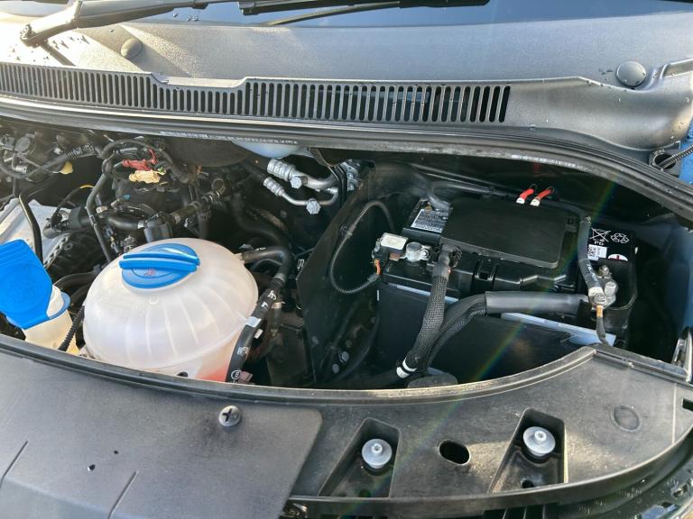 Titanium Black/Titanium Black- Palladium/Black, Ravenna Blue Metallic, Parking sensors - front and rear, Tyres 215/60 R17 C 109/107T with optimised rolling resistance, Leather-wrapped multi-function steering wheel (3-spoke), Digital radio reception, 1 year follow-on warranty, max. 160 000 km, Adaptive Cruise Control including speed limiter and City Emergency Braking, Forward collision warning incl. autonomous emergency braking, for adaptive cruise control ""high"", Adaptive cruise control including speed limiter, Gross vehicle weight rating: 3,200 kg with reinforced 17"" steel wheels, Heavy-duty tool kit and jack, Suspension/shock absorption, standard 2, Hub cap, Steel wheels 7J x 17, Gross vehicle weight rating, UK specification, Information kit in English, Type approval country Great Britain and Northern Ireland, Component parts set, complying with vehicle type for Great Britain, various parts, Labels for country group 13, Preparation for ""We Connect"" and ""We Connect Plus"", Online service, with OCU, without head unit coding, without engine immobilizer interconnection.