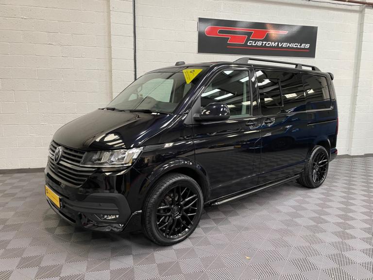 !! PRICE PLUS VAT !! FINANCE AVAILABLE UP TO 5 YEARS WITH LOW DEPOSIT!!We are pleased to offer this outstanding VW Transporter T6.1 Highline 2.0 TDi T32 150 BHP 6 Speed SWB (EU6) finished in Deep Sea Pearl Black Pearlescent Metallic Paint Work having a Great Spec,Twin Sliding Doors,Tailgate,App-connect,Electric Windows and Powerfold Mirrors,Air con,Heated Front Screen,Adaptive Cruise Control,20""Alloys,Full Kombi spec Fully carpet lined with LED lights,side bars,SPORT LINE PACK,Roof Rails, the condition is superb and it looks stunning finished in Pearl Black metallic.This van has only covered 50000 miles and must be seen..""We offer a wide range of Alloy wheels for all of our Transporters if you don't like what we have fitted to any of our vans we will be more than happy to change them to a Alloy that you like""It has a great spec and £1000's has been spent the condition is superb inside and out not like a lot of other vans out there for sale please see photos and video.SEE MORE TRANSPORTERS ON OUR WEBSITE.This must be seen please contact us to make a appointment to view.All our Vehicles are in a heated indoor showroom so can be viewed in any weather.Please let us know if you would like to view any of our vehicles outside our normal opening hours and we will do our best to arrange this for you...........MANY MORE EXTRAS AVAILABLE ""FULL LEATHER,LOWERING KITS,BIG BRAKES,ALLOYS ETC PLEASE CONTACT A MEMBER OF OUR TEAM .NATIONWIDE WARRANTYS Family run business specialists in VW sports vans, £32,990, +VAT