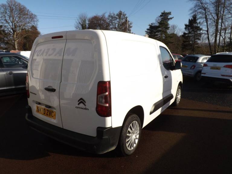 CITROËN BERLINGO 1.5 BlueHDi 650 Enterprise M Panel Van Registration: SM70ZVC Fuel: Diesel Transmission: Manual Euro 6 Compliant Key Features Efficient 1.5 BlueHDi Engine - 75 PS for reliable performance and excellent fuel economy. Short Wheelbase (SWB) - Compact yet spacious for urban and business use. Enterprise Trim - Smart tech and comfort features for a professional finish. Euro 6 (s/s) - Low emissions and stop/start technology for greener driving. Practical 5-Door Design - Easy access for loading and unloading. Specification Engine: 1.5 BlueHDi Diesel, 75 PS Transmission: 5-Speed Manual Fuel Economy: Approx. 54-65 mpg combined CO? Emissions: Euro 6 compliant Load Length: 1,817 mm Load Volume: 3.3 m³ Payload: Up to 650 kg Doors: 5 (Twin rear doors + side sliding door) Seating: 3 front seats Infotainment: 8" Touchscreen, Bluetooth, USB, DAB Radio Comfort: Air Conditioning, Cruise Control, Steering Wheel Controls Safety: ABS, ESC, Hill Start Assist, Driver Airbag Convenience: Rear Parking Sensors, Electric Windows, Remote Central Locking Benefits for Your Business Outstanding Fuel Efficiency - Lower running costs with advanced diesel technology. Generous Load Space - Ideal for tools, equipment, and deliveries. Comfortable Cabin - Designed for long days on the road with ergonomic seating and modern infotainment. Professional Image - A smart, reliable van that reflects your business quality. Compliance & Reliability - Euro 6 standards mean youre ready for clean air zones and future regulations. Drive away today! Competitive finance options available. Contact Macfadyen Motors now to book a test drive or get a personalised quote..12V Socket in Dashboard, 15in Steel Wheels with Twin Wheel Cover, 6 Floor-Mounted Load Securing Rings, 6 Way Adjustable Drivers Seat - includes Lumbar Adjustment and Under Seat Storage, 8in Colour Touchscreen with Citroen Connect DAB Radio - Bluetooth Handsfree - USB Socket and Aux-In Jack, Air Conditioning, Airbags - Driver, Alarm - Parametric and Volumetric - Thatcham Category 1 Approved Alarm with Tilt Sensor, Automatic Activation of Hazard Warning Lights on Major Deceleration, Automatic Electronic Parking Brake, Citroen Connect Box with Emergency and Assistance System, Cruise Control with Programmable Speed Limiter, Cup Holders for Driver and Passenger on Either Side of the Dashboard, Dashboard Mounted Central Locking Push Buttons and Auto Locking Above 7 MPH, Door Opening Warning Light and Audible Lights-On Warning, Electric Power Assisted Steering with Reach and Rake Adjustable Steering Column, Electric Windows - Front with One Touch Operation, Electrically Folding - Adjustable Door Mirrors with Temperature Sensors, ESC with Hill Start Assist - ABS Braking including EBA and EBFD, EXTENSO Modular Folding Passenger Bench Seat with Pivoting Writing Table - Storage Under Central Seat - Load Through Hatch in Bulkhead and Load Protection Cover Compliant with ISO27956, Front Fog Lights, Full Steel Bulkhead, Hard Plastic Floor Protection in Cabin, Height Adjustable Halogen Headlights, High Level Third Brake Light, Lockable Fuel Cap, Multi-Function On-Board Trip Computer, Nearside Sliding Side Loading Door, Overhead Storage Shelf in Cabin, Rear Parking Sensors, Remote Central Locking with Deadlocks, Rev Counter with Maintenance and Gear Efficiency - GEI - Indicators, Rolling Code Transponder Immobiliser, Seat Belt Unfastened Warning - Driver, Side Rubbing Strips, Spare Wheel - Full Size Steel, Storage - Door Pockets with Bottle Holders, Top Box Dashboard Storage Compartment, Two Speed Intermittent Front Windscreen Wipers, Tyre Pressure Monitor, Unglazed Asymmetric Rear Doors Opening to 180 Degrees, Visible Vehicle Identification Number at Base of Windscreen